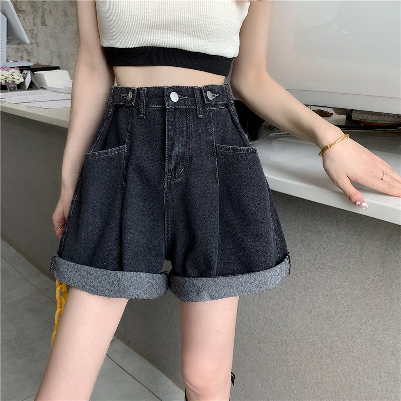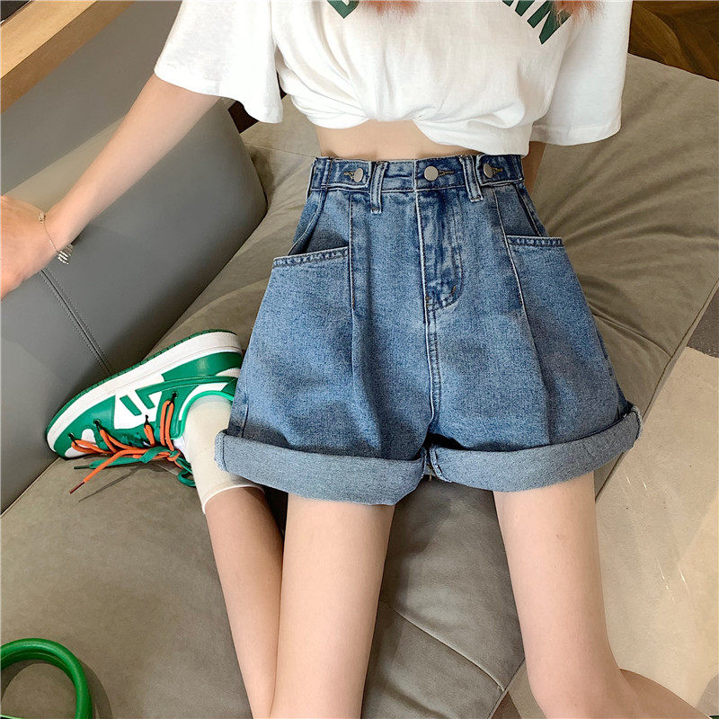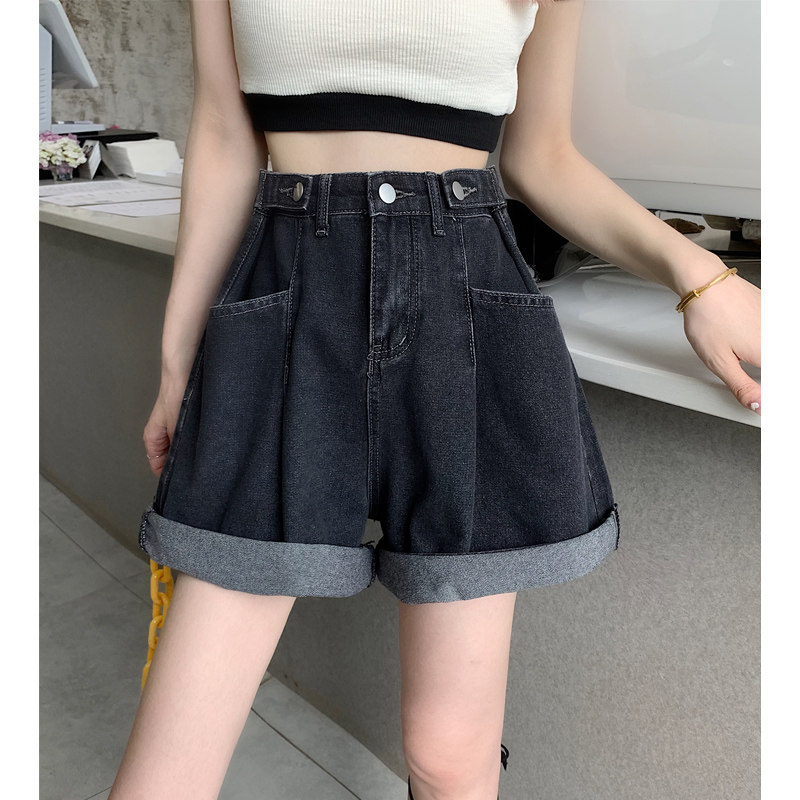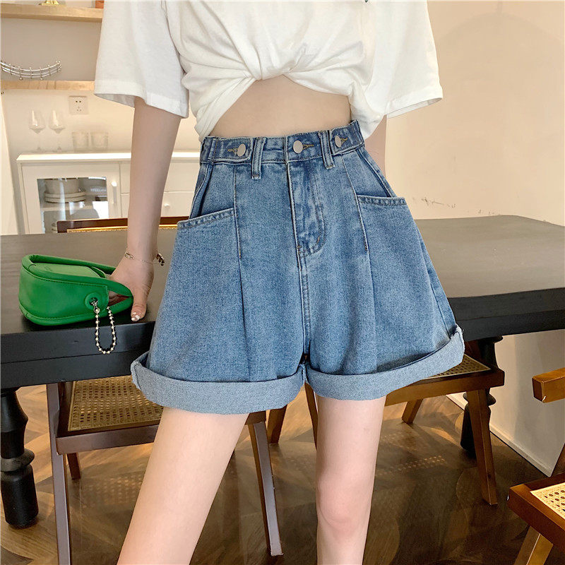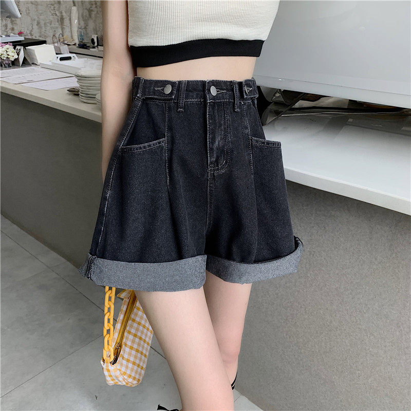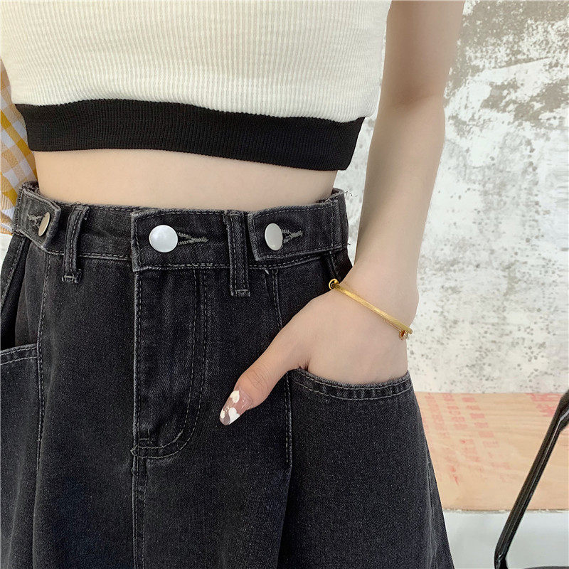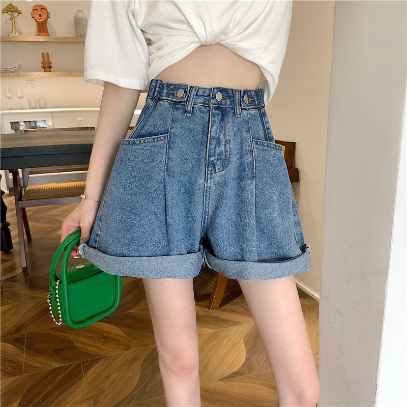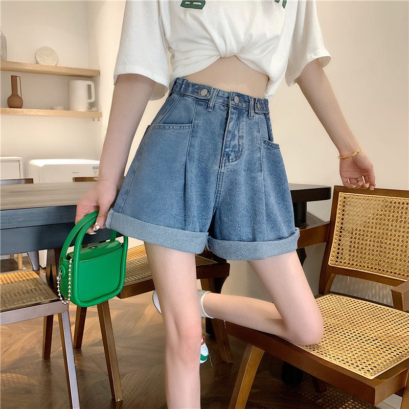 Джинсовая юбка, шорты, осенние штаны, в корейском стиле, высокая талия, большой размер, свободный прямой крой