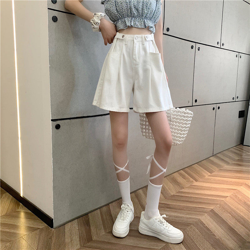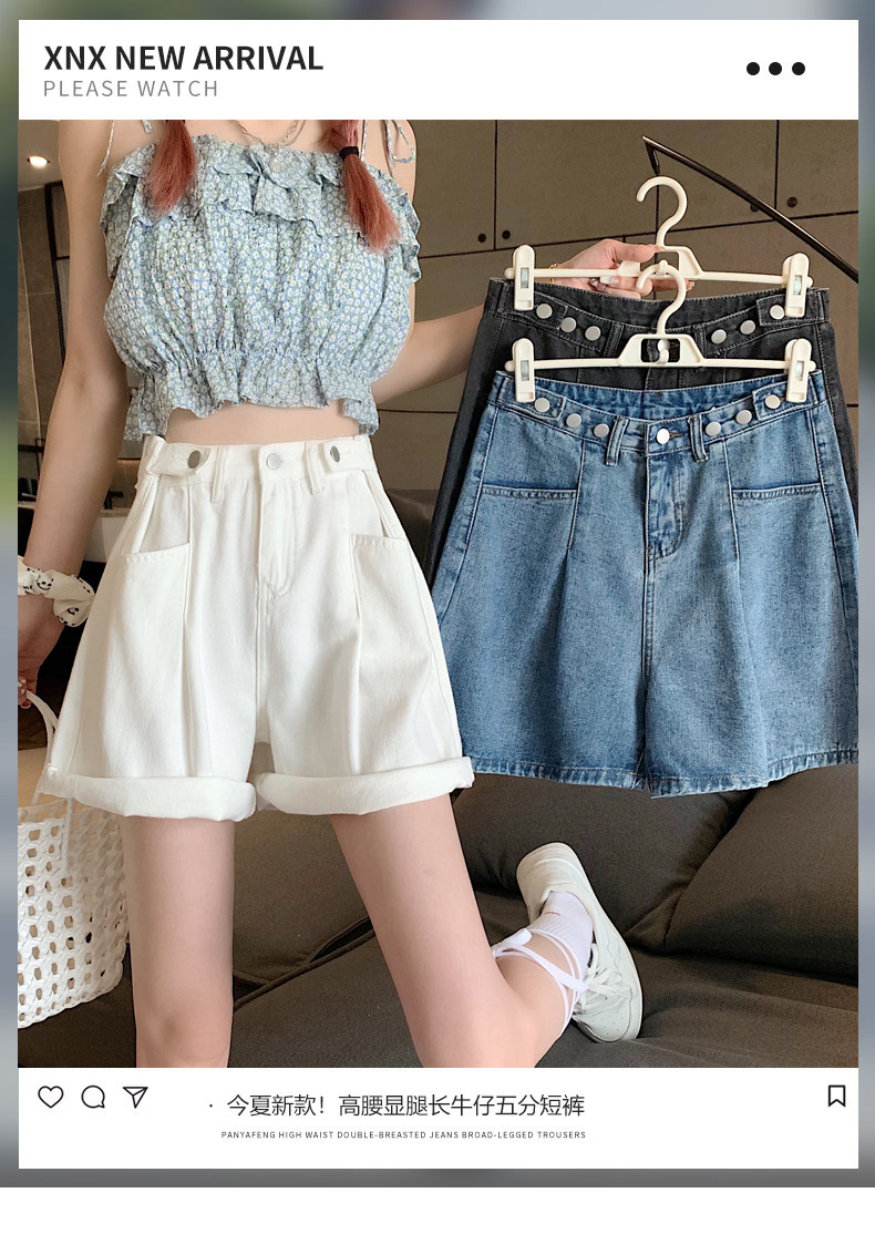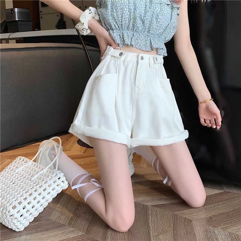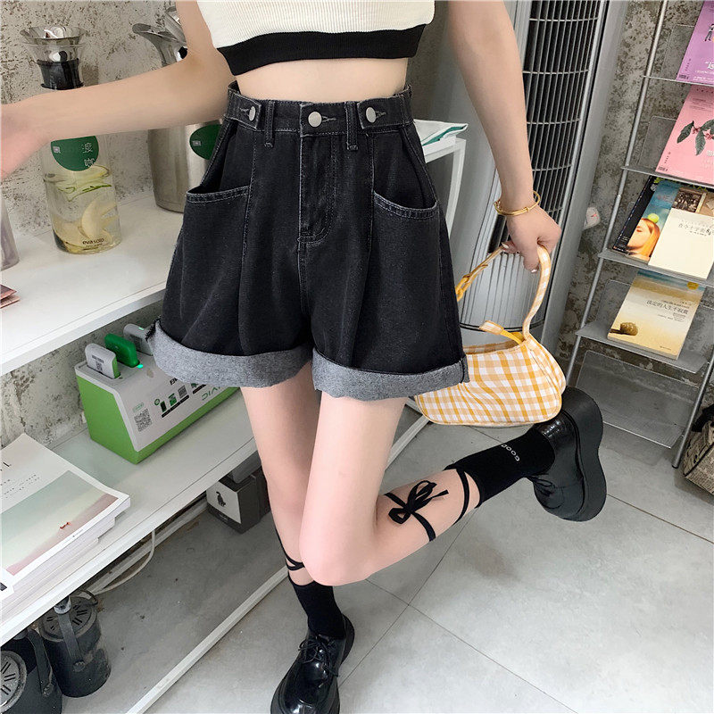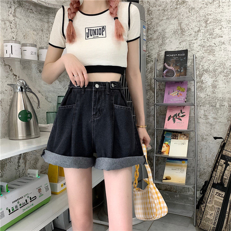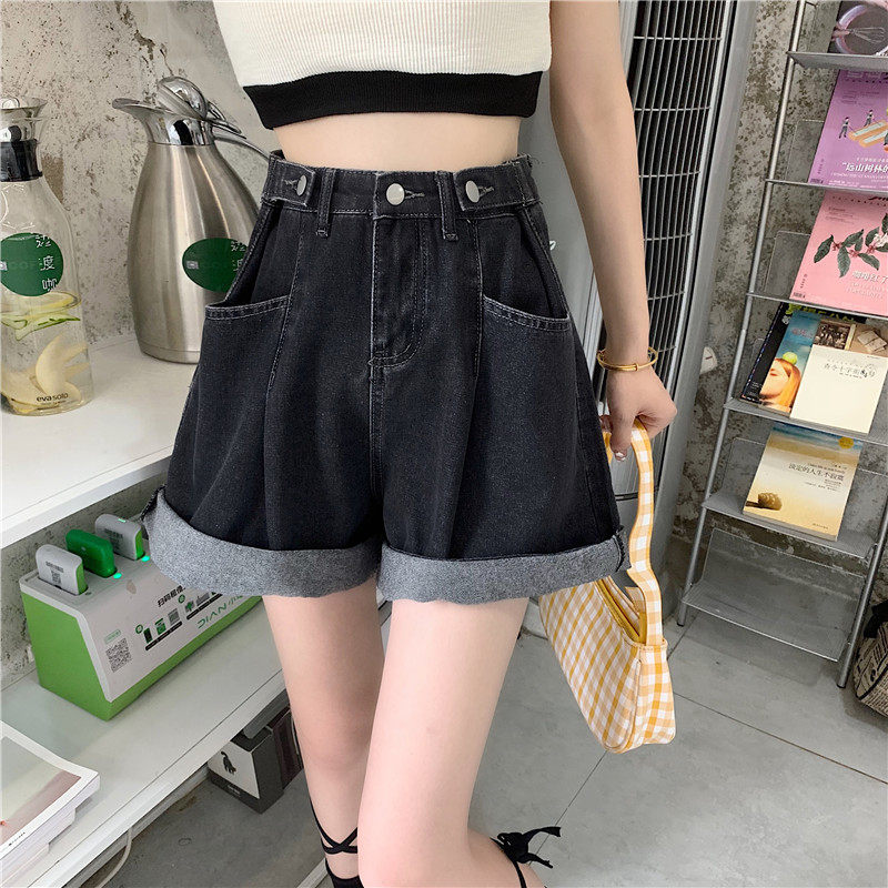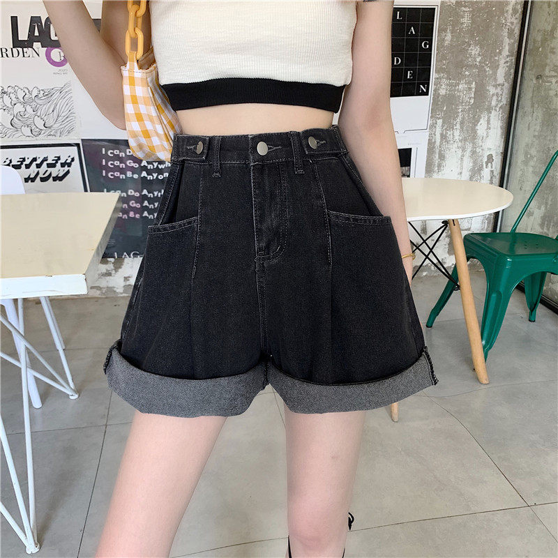 Джинсовая юбка, шорты, осенние штаны, в корейском стиле, высокая талия, большой размер, свободный прямой крой