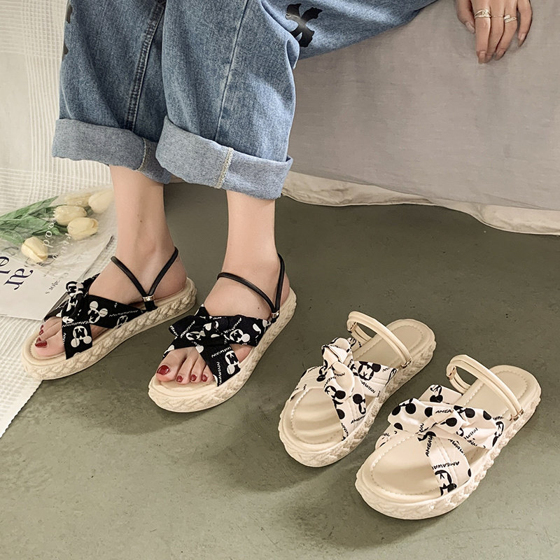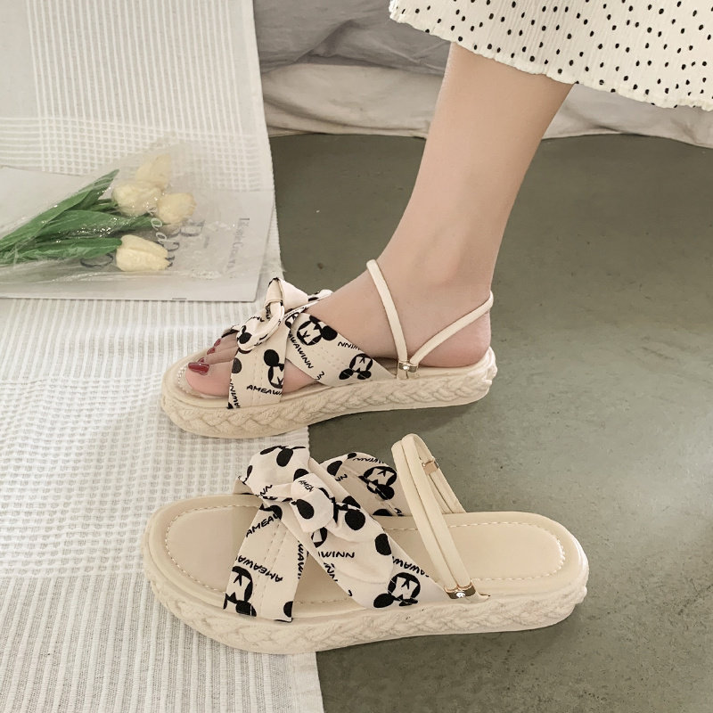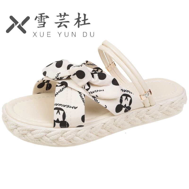 Тапочки, летняя обувь, универсальные пляжные слайдеры с бантиком на платформе, 2022 года