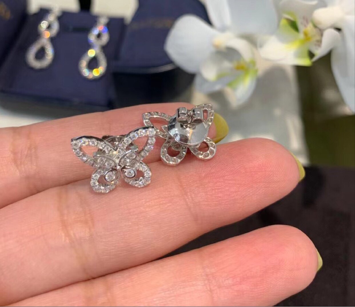 - Серьги-бабочки среднего размера с бриллиантами (0,75 карата)