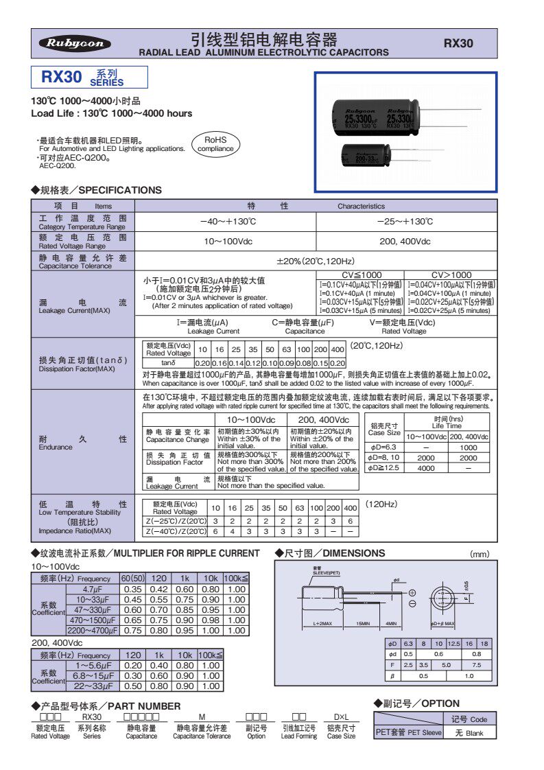 Новый продукт подлинный японский Ruby Rubycon 50V10UF Импортированный электролитический конденсатор RX30 Высокая температурная устойчивость