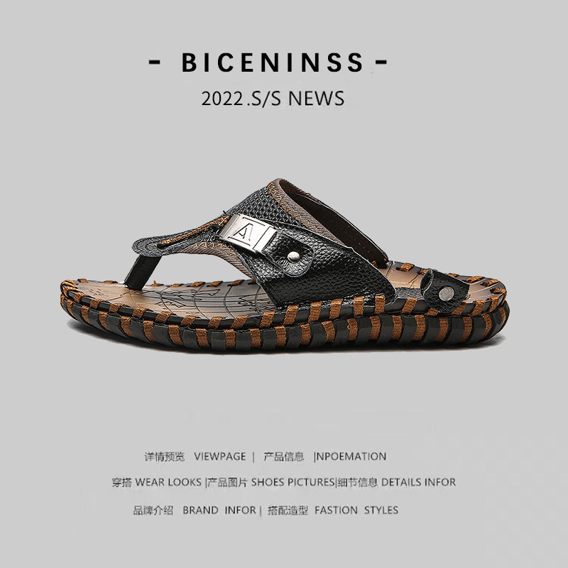 Сланцы, летние тапочки, босоножки, 2023 года, из натуральной кожи