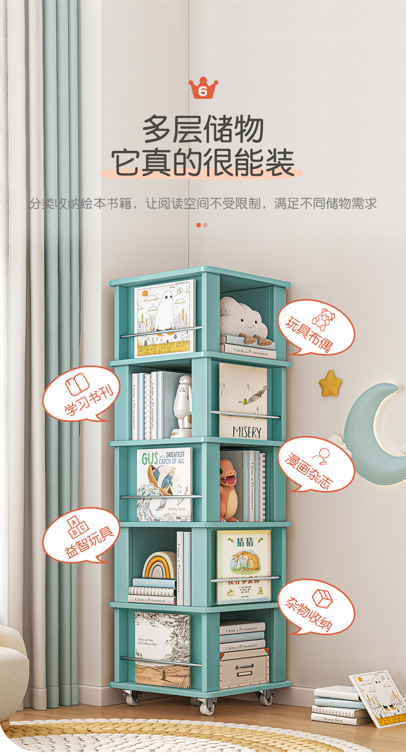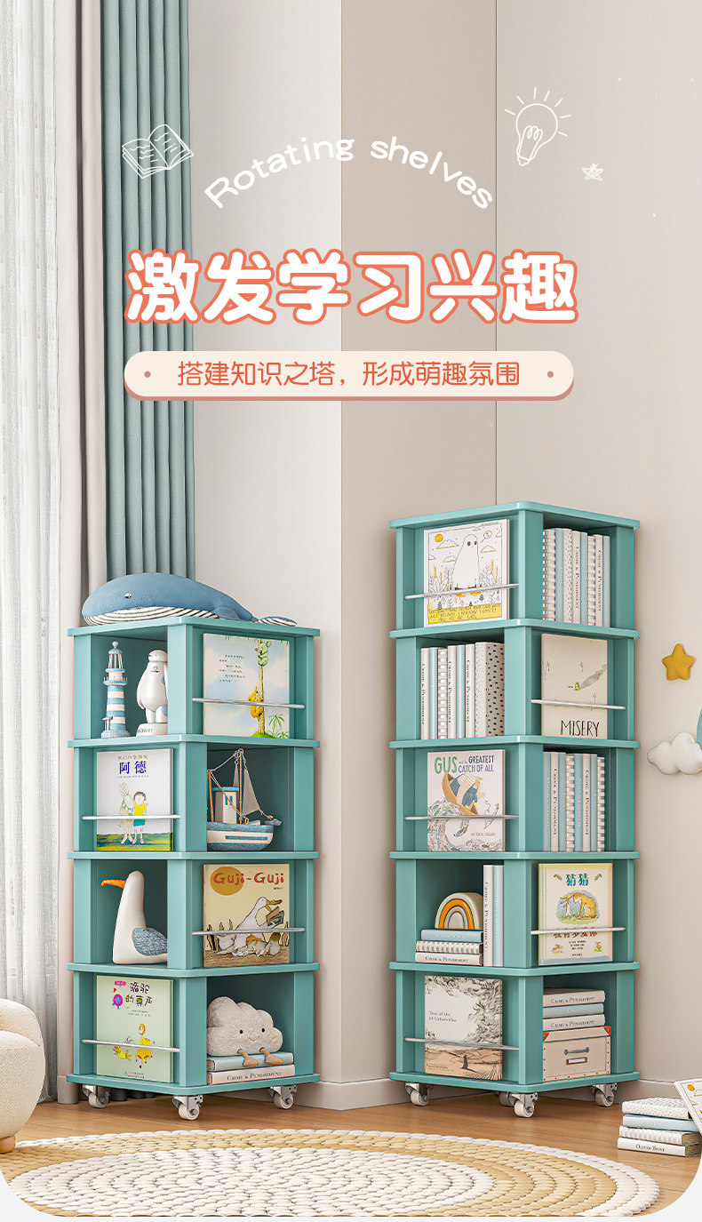 Поверните книжную полку 360 -Degree небольшой книжный шкаф на землю, чтобы переместить гостиную.