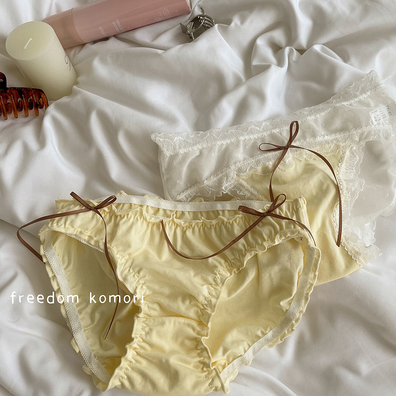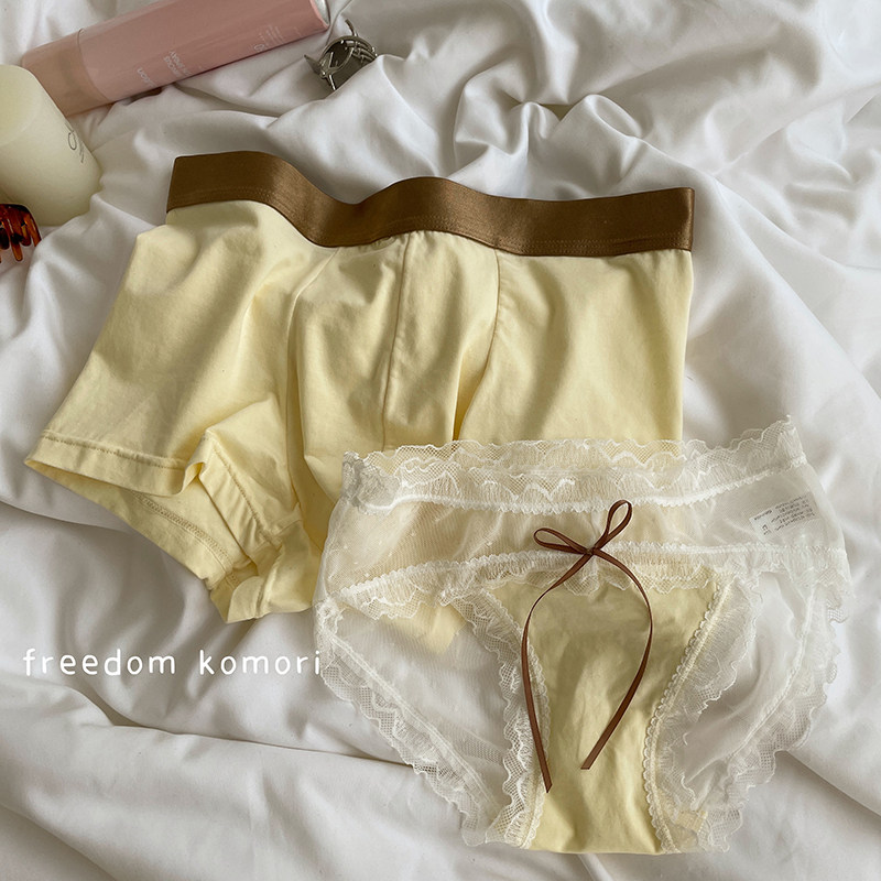 Желтое нижнее белье для влюбленных, хлопковые кружевные штаны на день Святого Валентина, подарок на день рождения