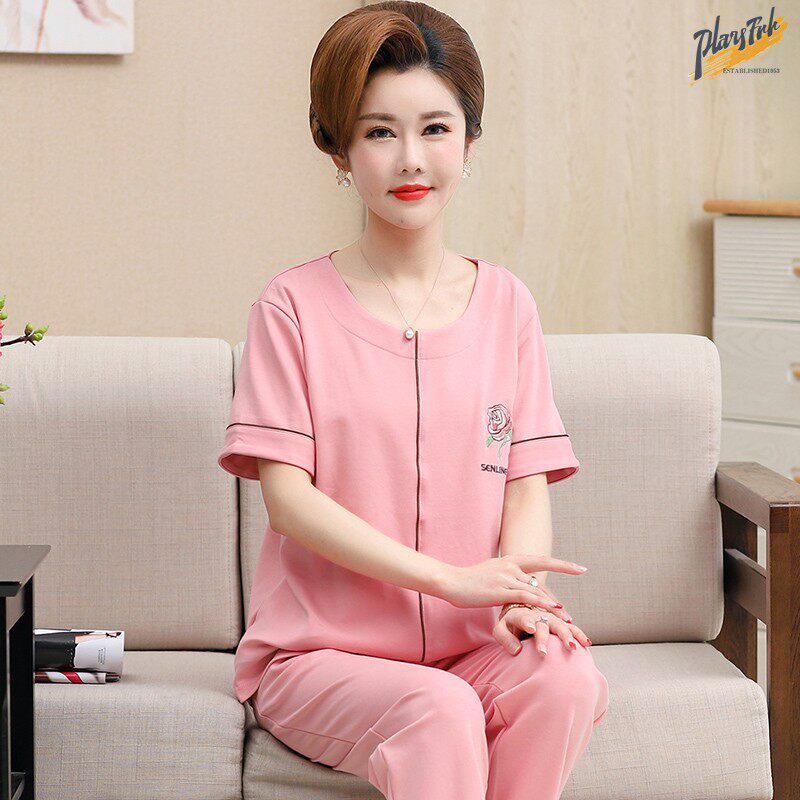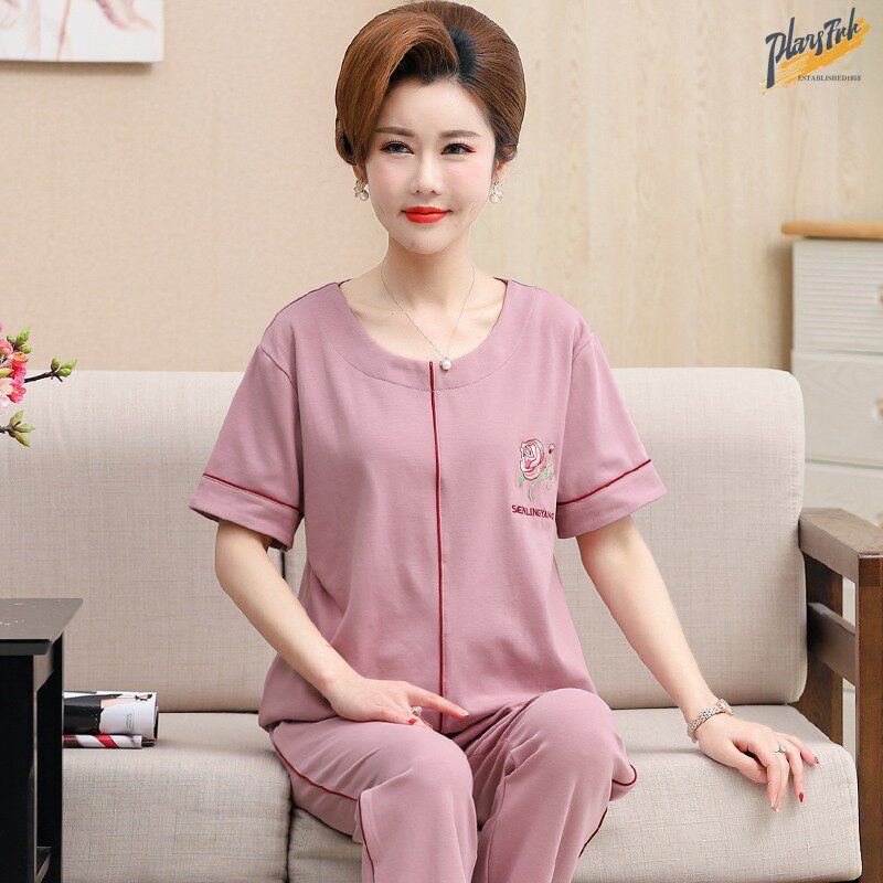 Летние хлопковые штаны, тонкая пижама, короткий рукав, для среднего возраста, большой размер