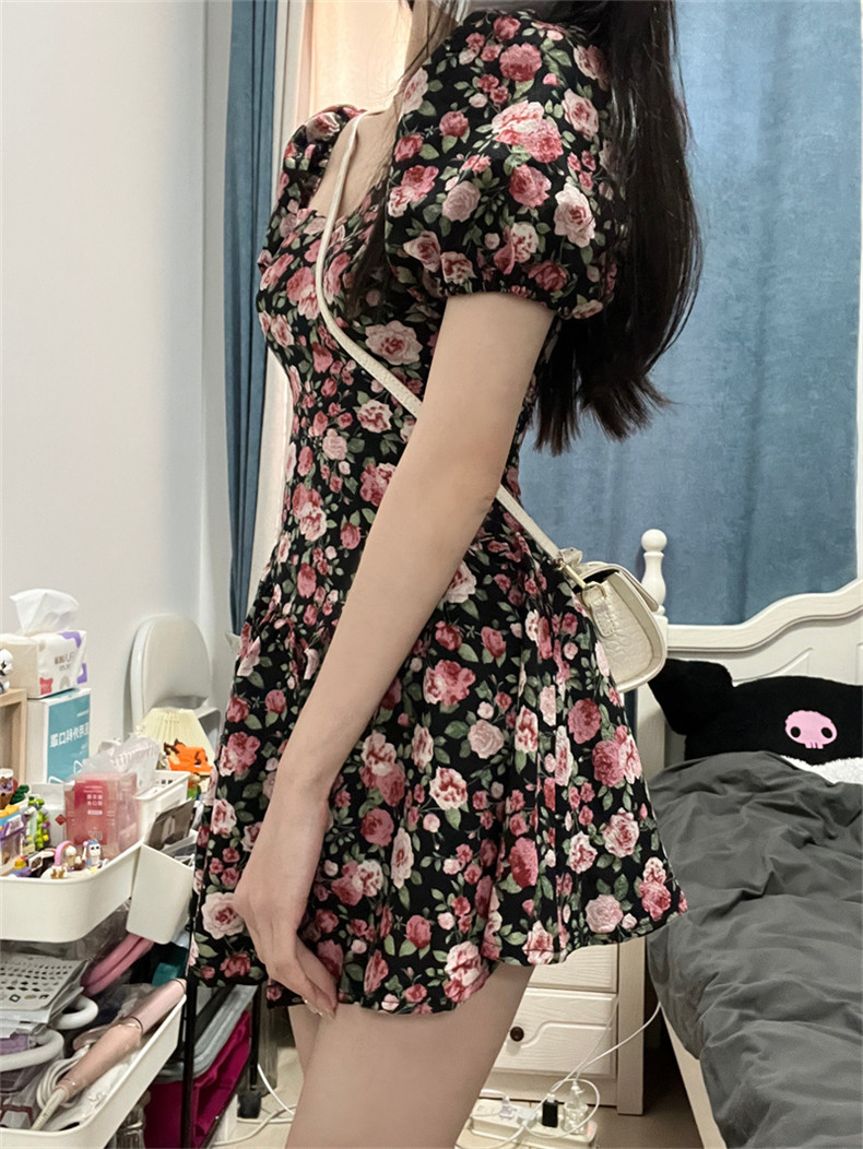 Летнее платье, юбка, подходит для подростков, французский стиль, цветочный принт, открытые плечи