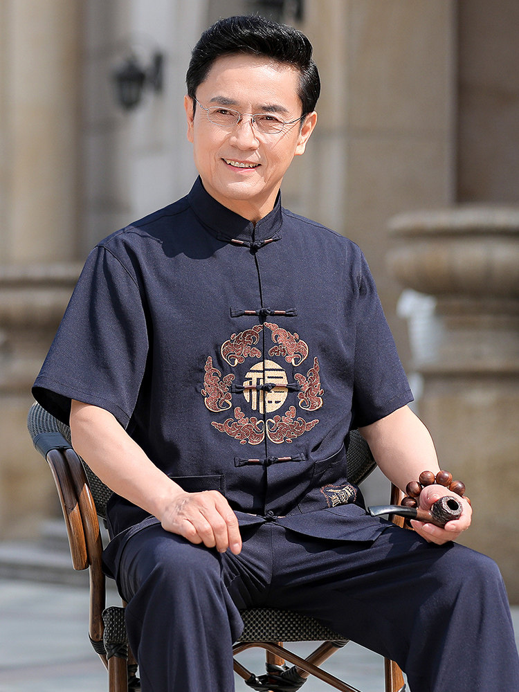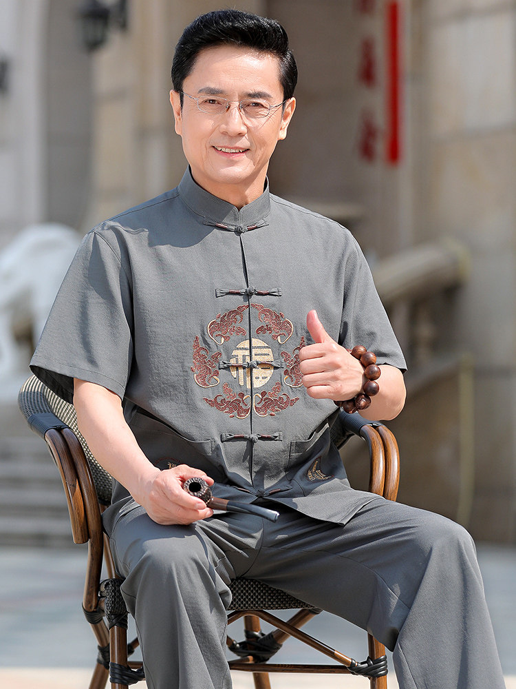 Летняя одежда для мальчиков для пожилых людей, летний комплект, короткий рукав, китайский стиль, 70 лет