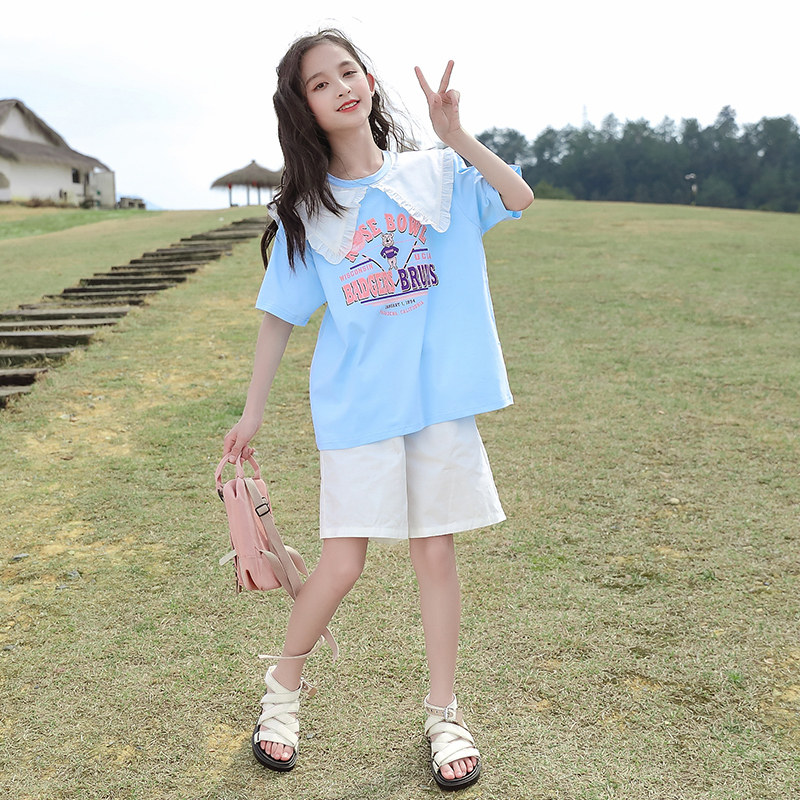 Летняя футболка с коротким рукавом, детская летняя одежда, в корейском стиле, короткий рукав, подходит для подростков, в западном стиле, 9 лет
