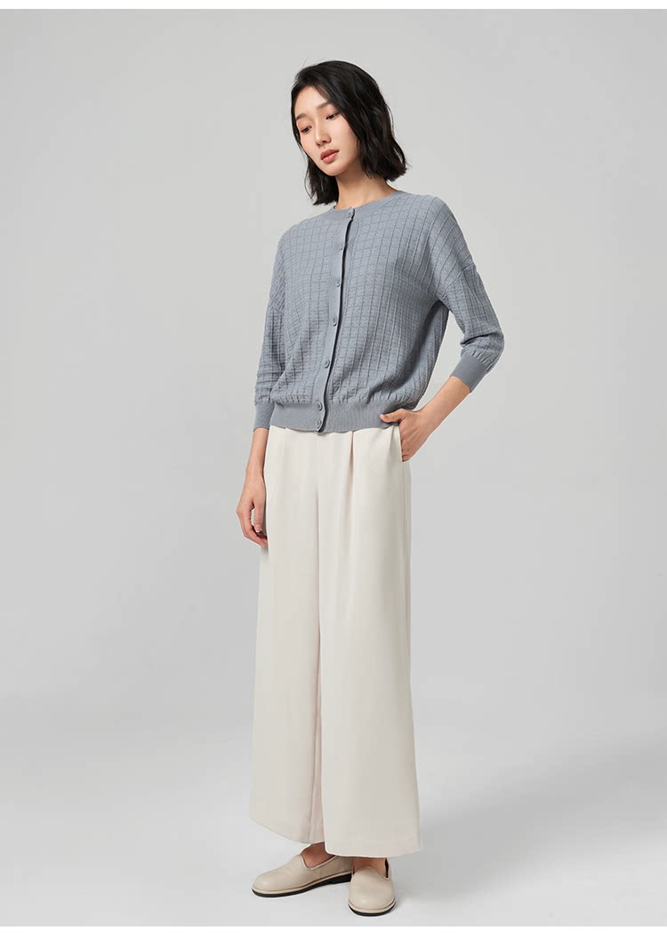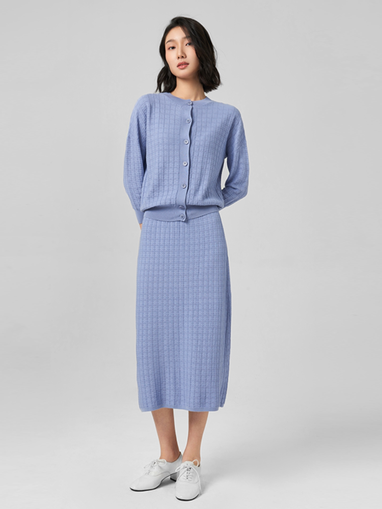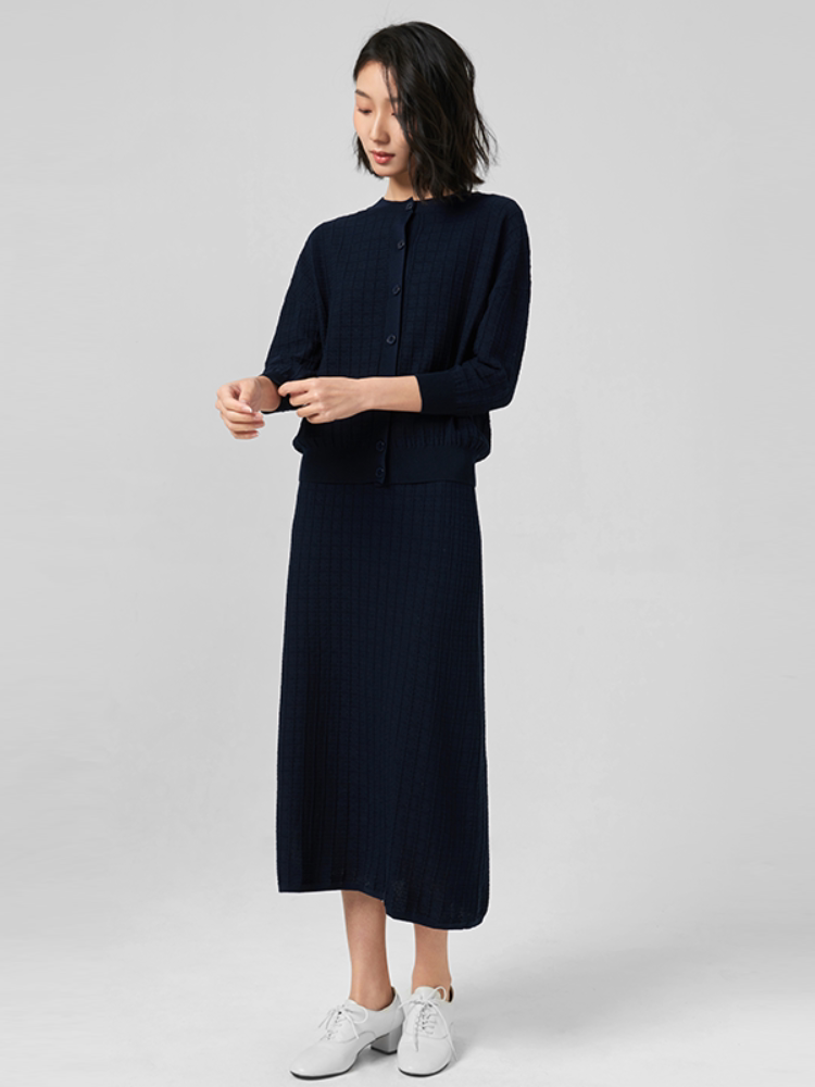 浅秋 Трикотажный кардиган с круглым воротником, осенний лонгслив, термобелье, длина миди