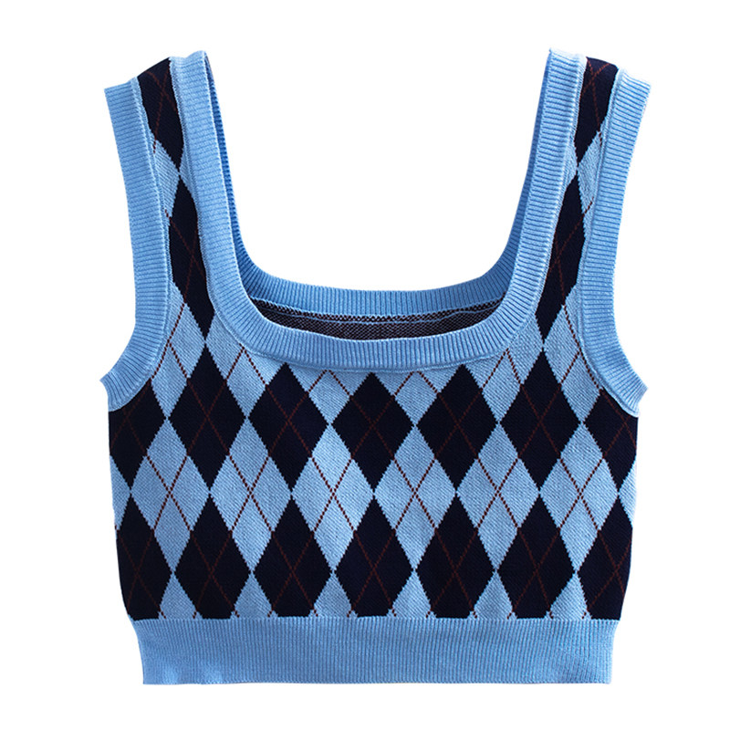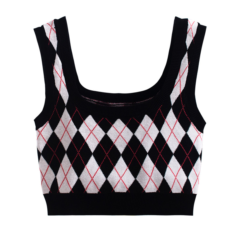 Летний жилет с ромбовидным узором, майка топ, ретро топ с чашечками, квадратный вырез