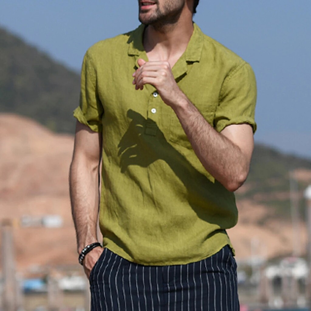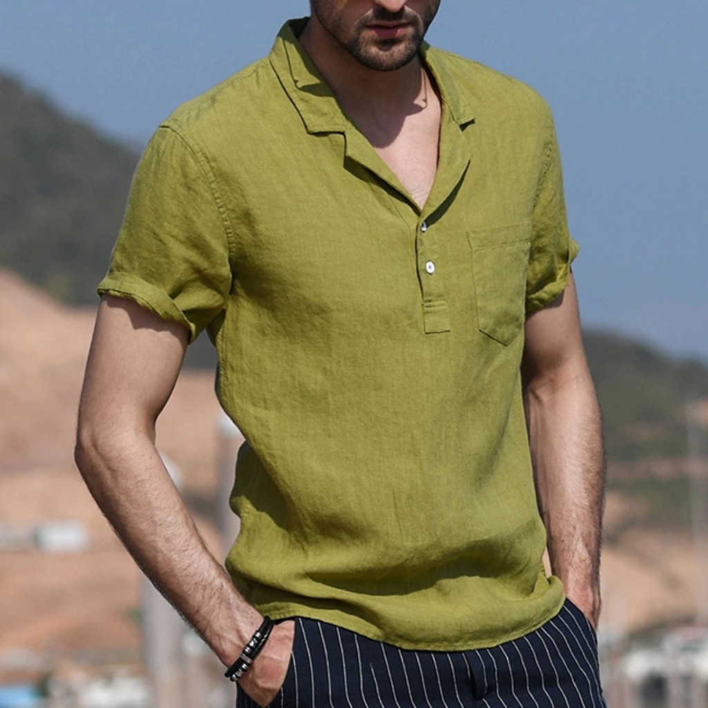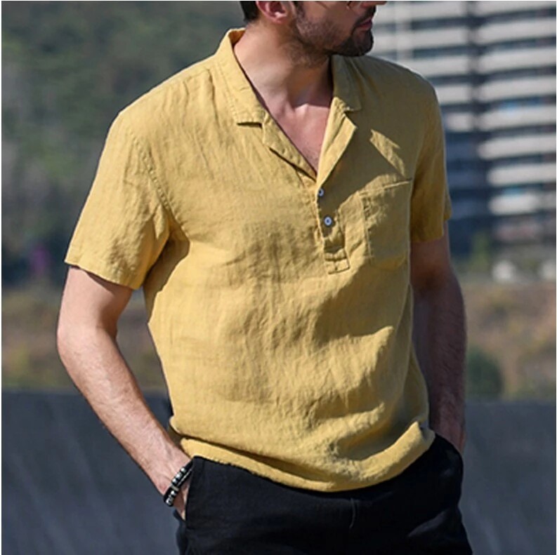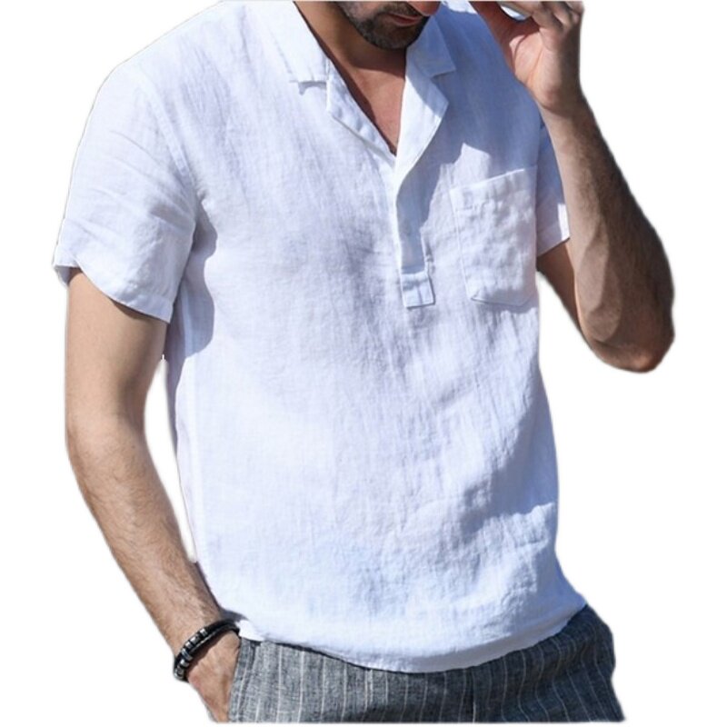 Летняя рубашка мужская хлопковая льняная гавайская рубашка белая мужская рубашка