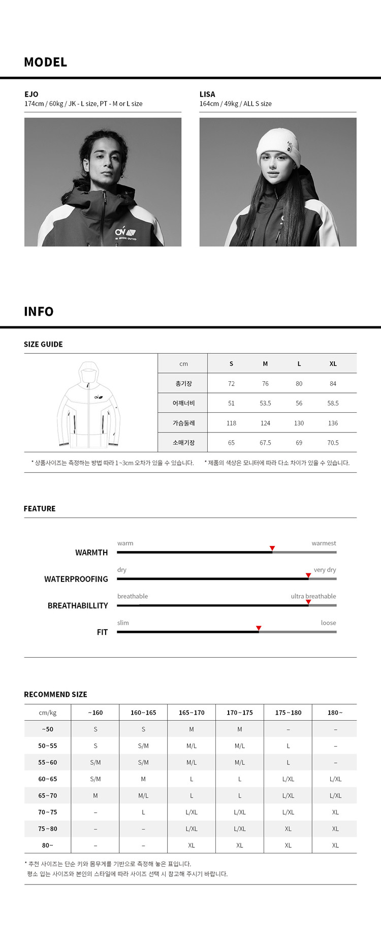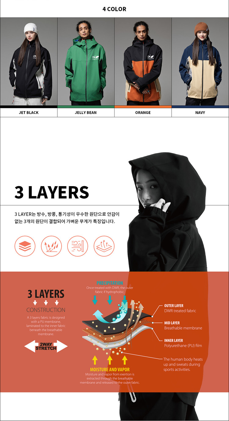 2324ovyo Корейский лыжный костюм Мужчины и женщины с ветропроницаемым водонепроницаемым клейким клейким костюмом лыжный костюм 3L