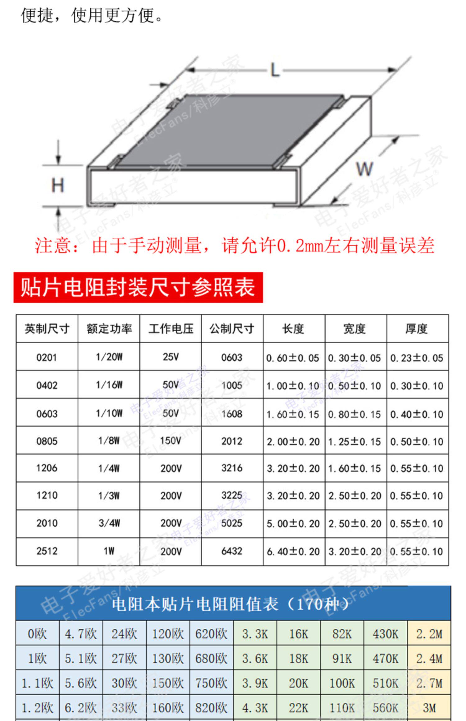 0201 упаковочный патч Dordent Эта точность 1% образец электронного компонента Это руководство 170, 50