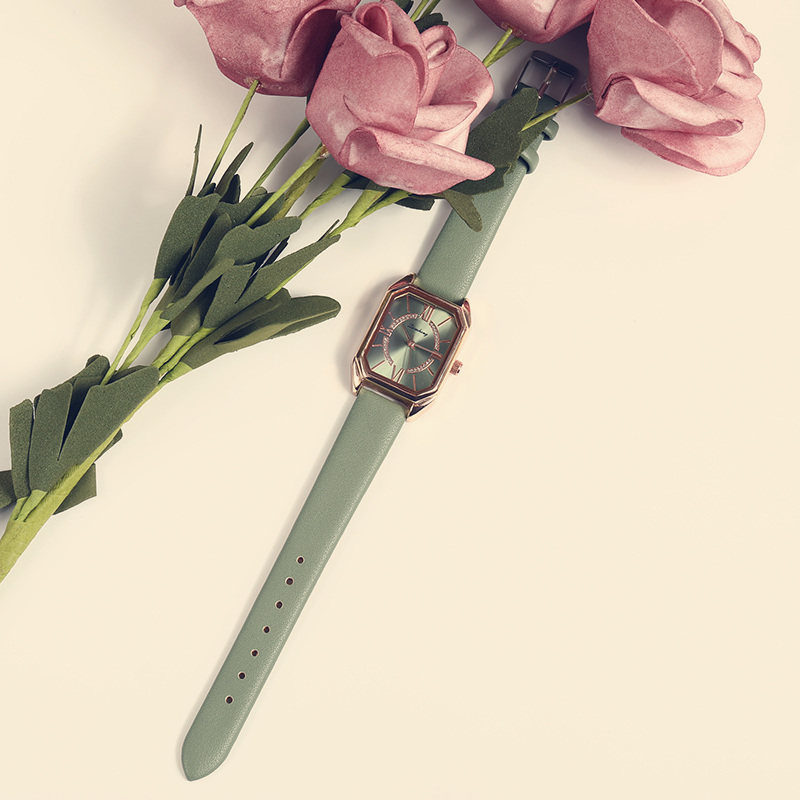 Брендовые зеленые маленькие квадратные женские часы, женский стиль, легкий роскошный стиль, простой и элегантный дизайн, изысканный стиль