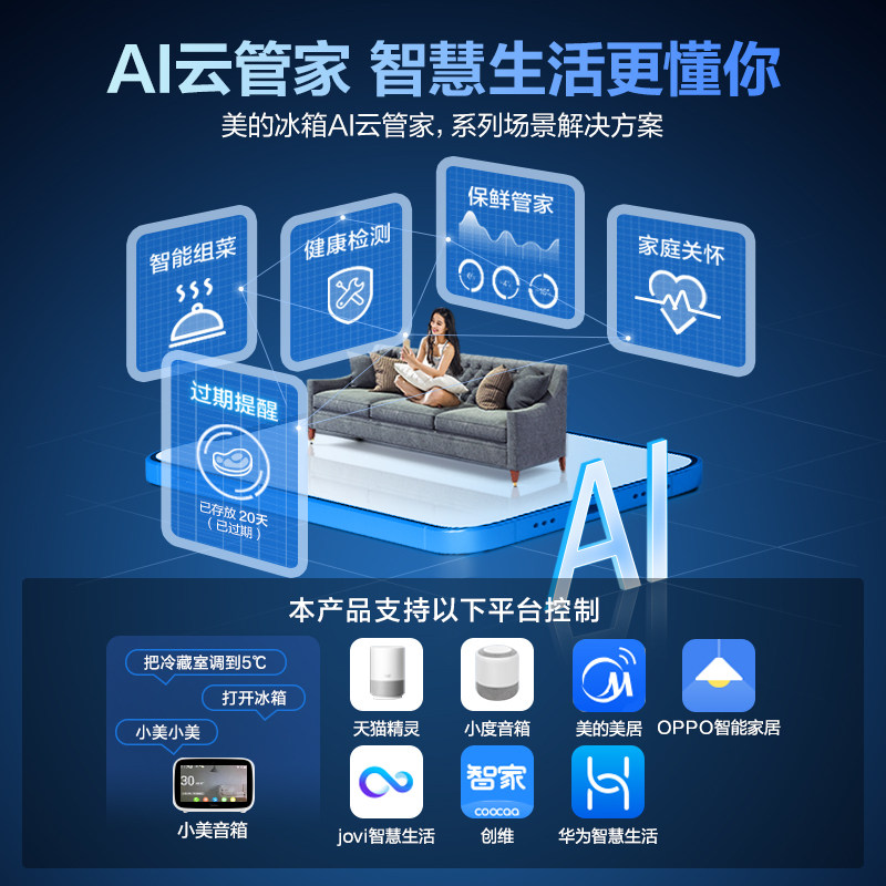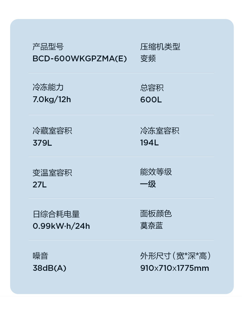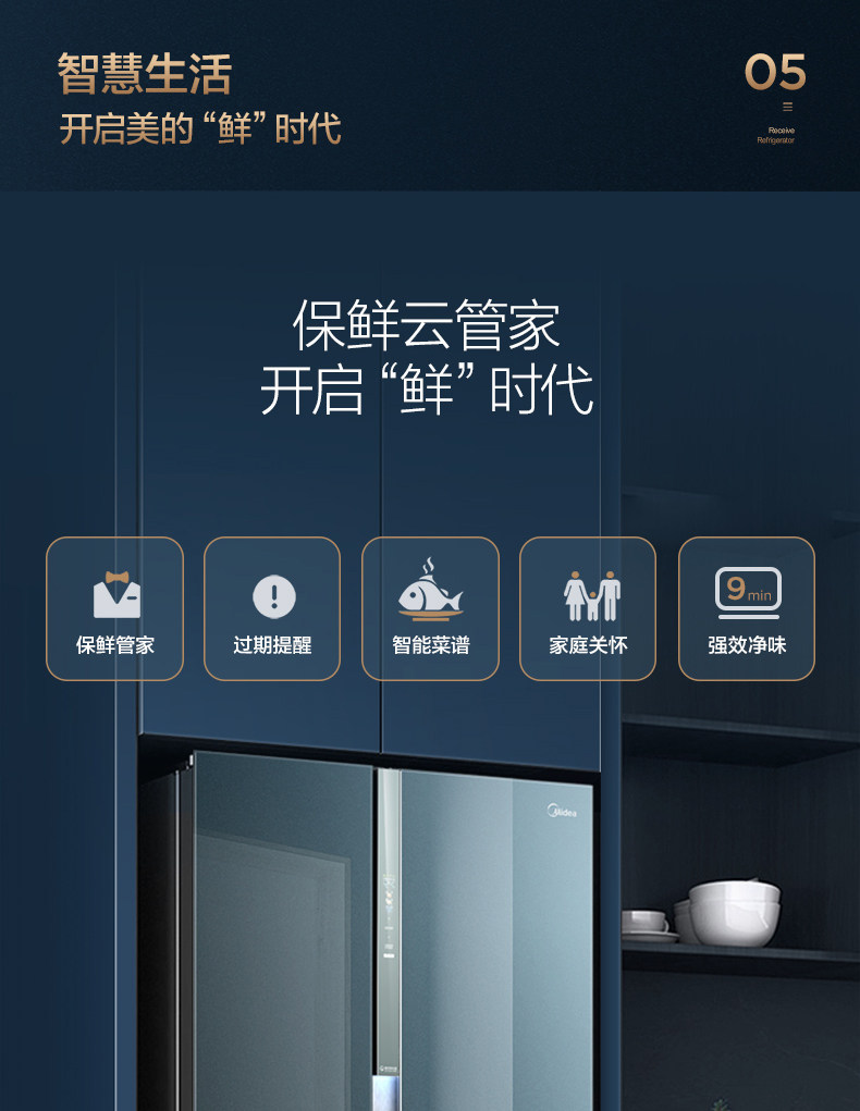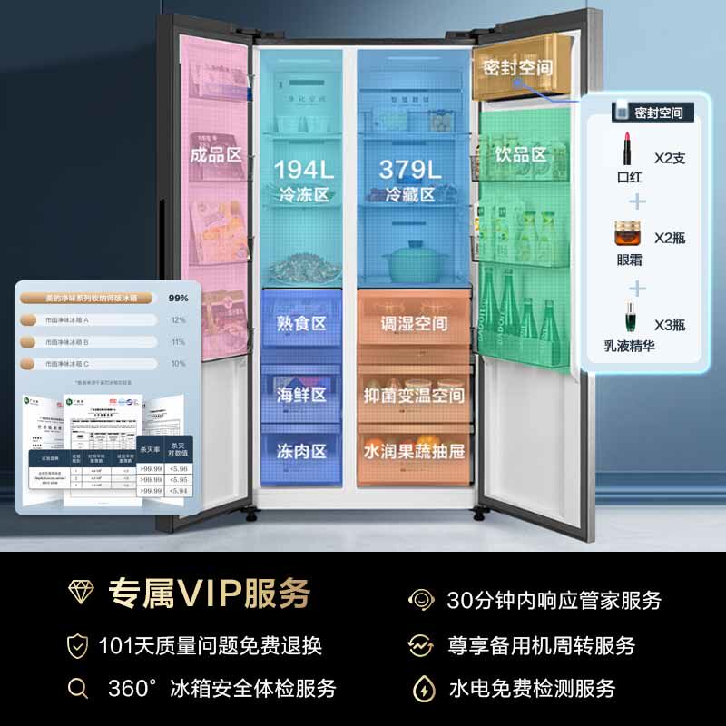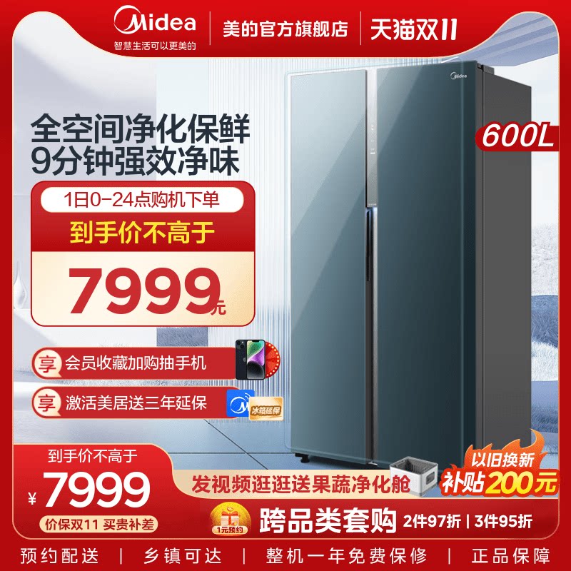 [Художник с сети] Midea 600L Двойной двойной дверной ветер и холодные мощности в холодильнике с интеллектуальным домом.