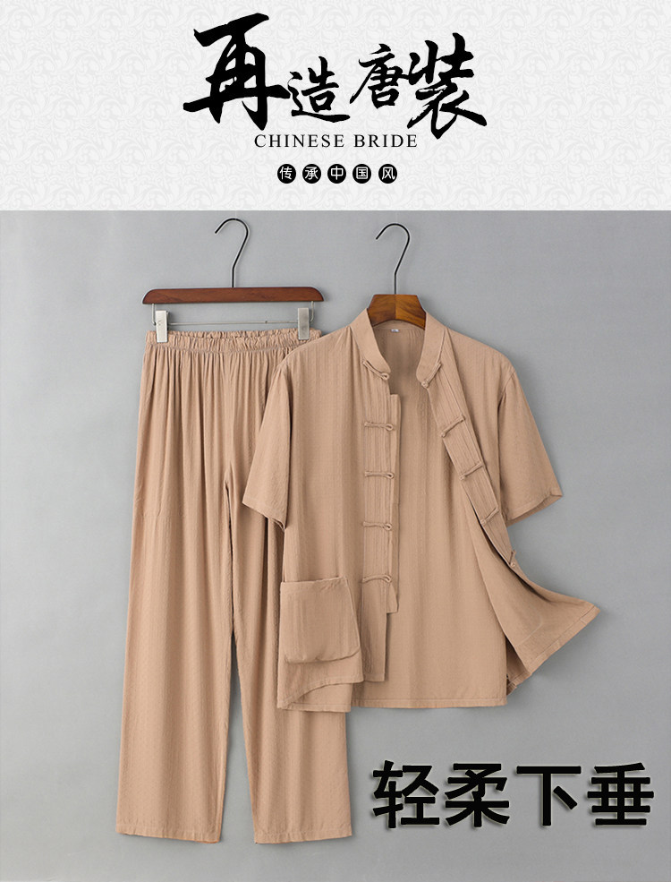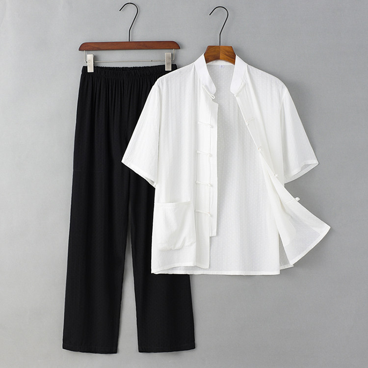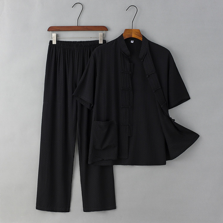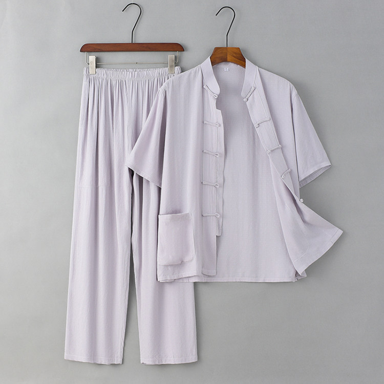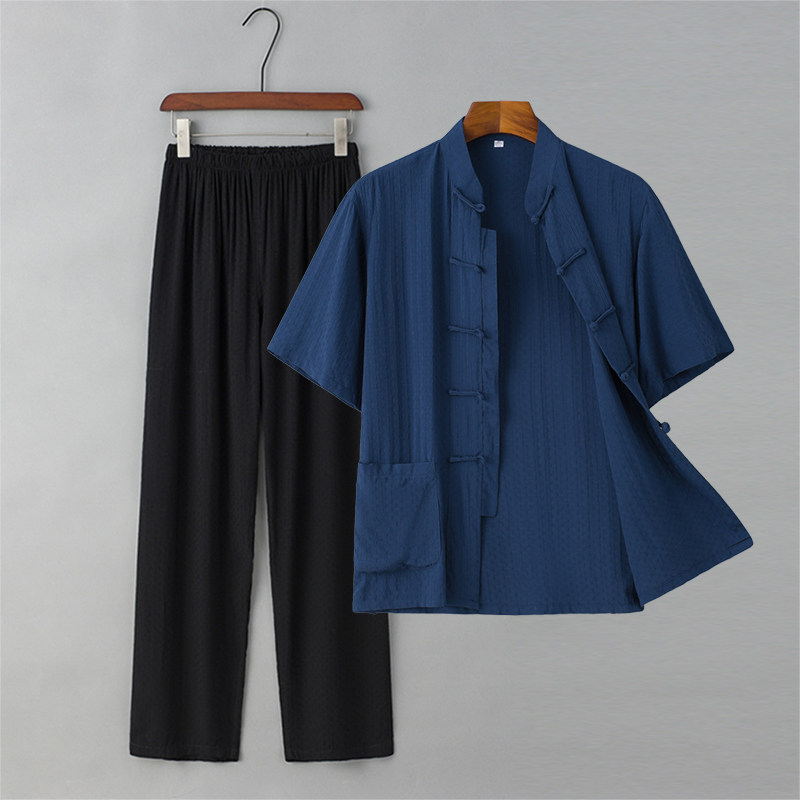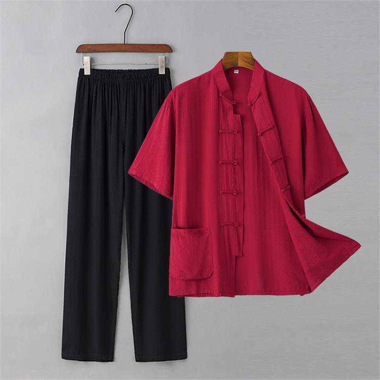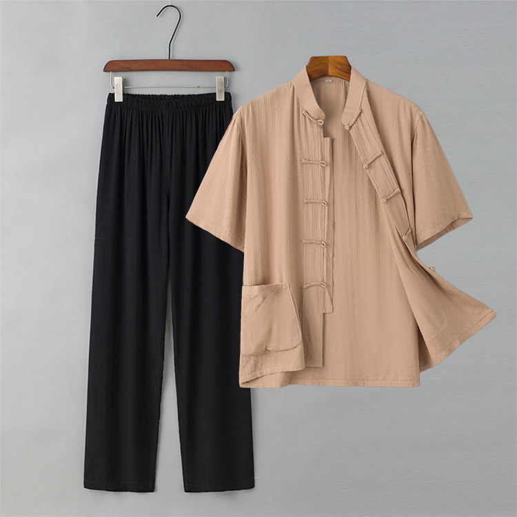 Летние тонкие нарукавники для мальчиков для пожилых людей, комплект, ретро ханьфу для отдыха, короткий рукав, из хлопка и льна, китайский стиль