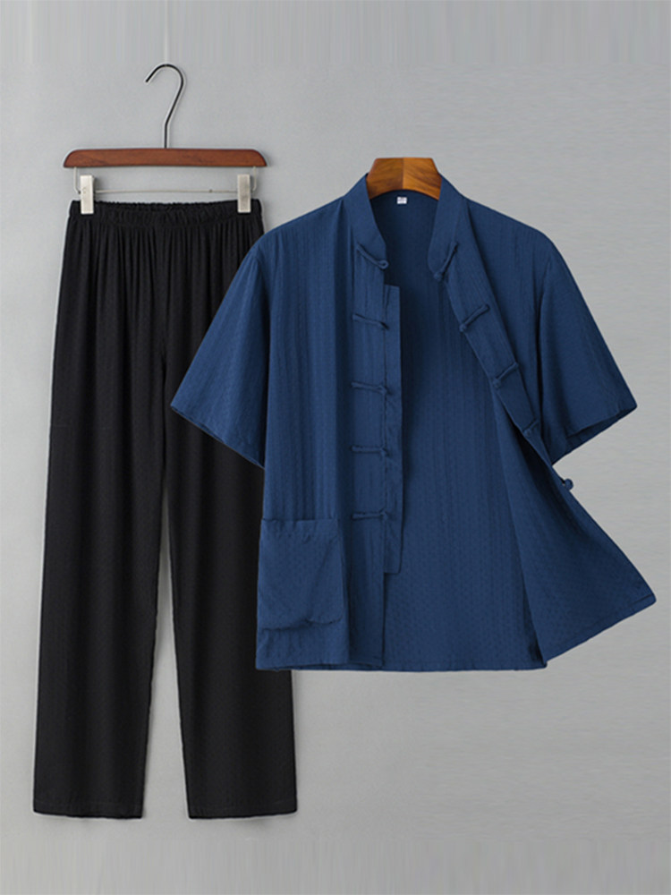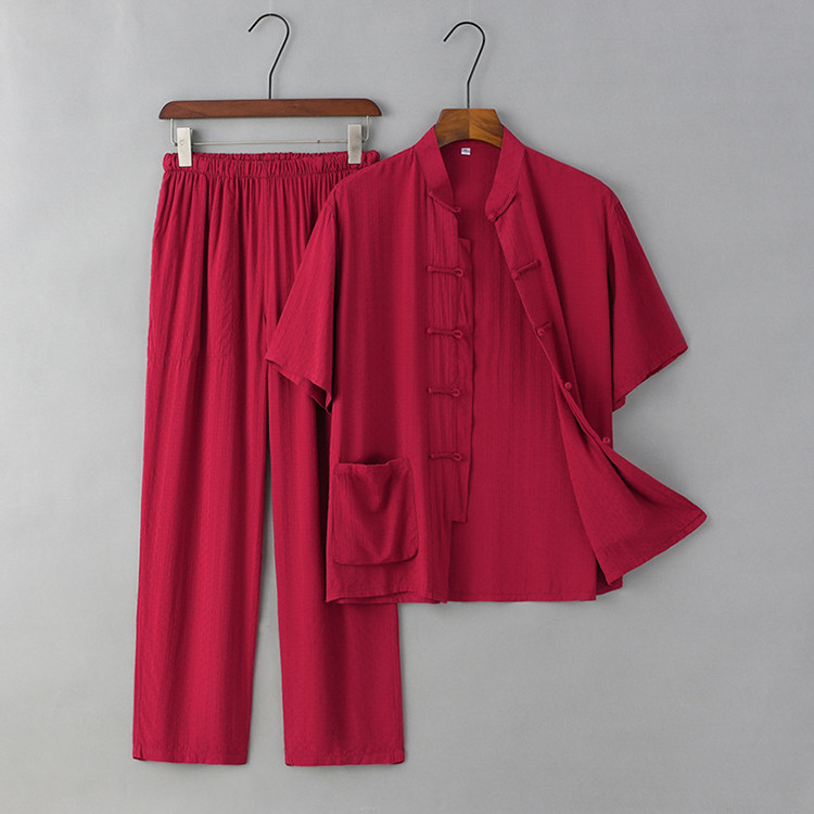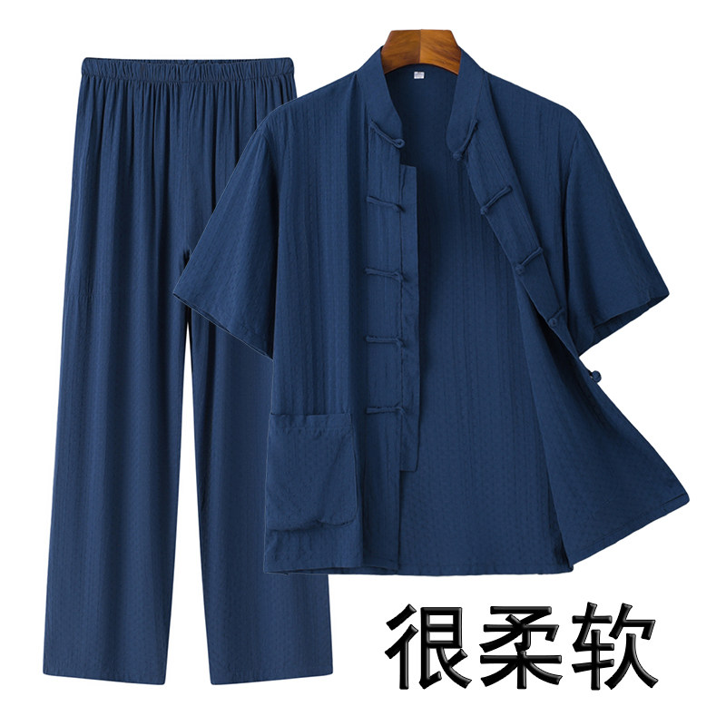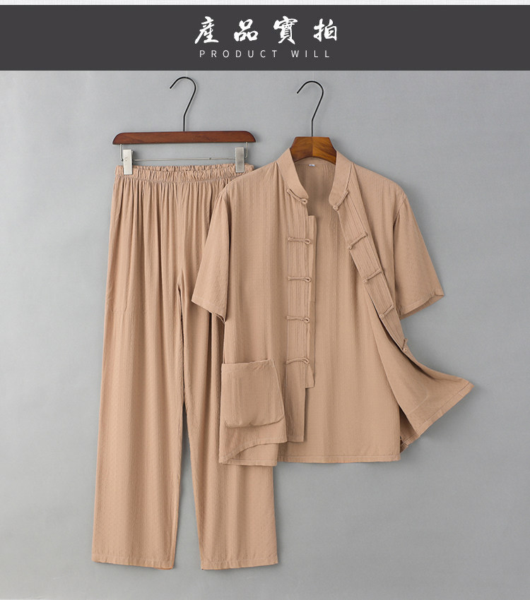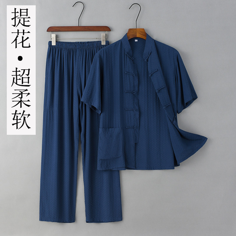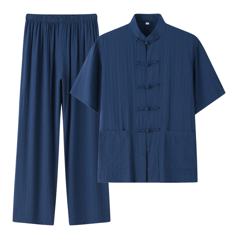 Летние тонкие нарукавники для мальчиков для пожилых людей, комплект, ретро ханьфу для отдыха, короткий рукав, из хлопка и льна, китайский стиль