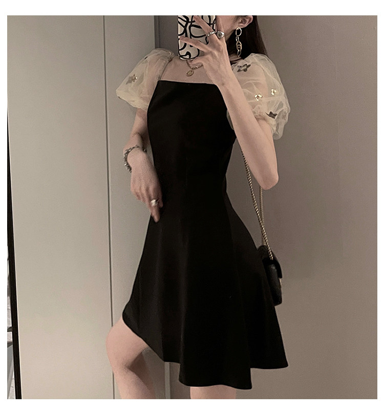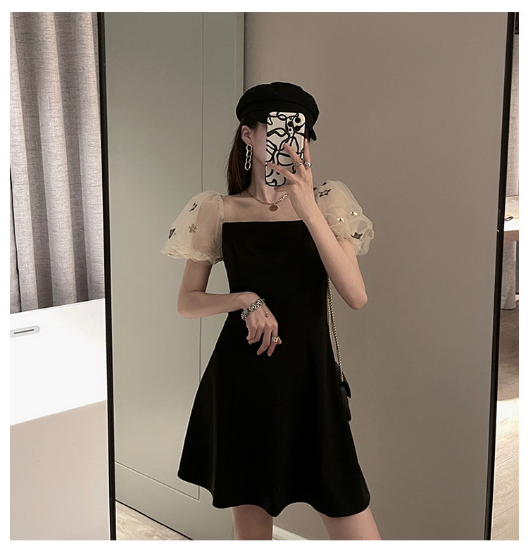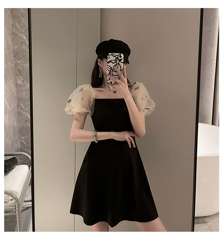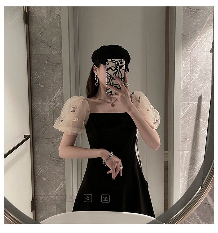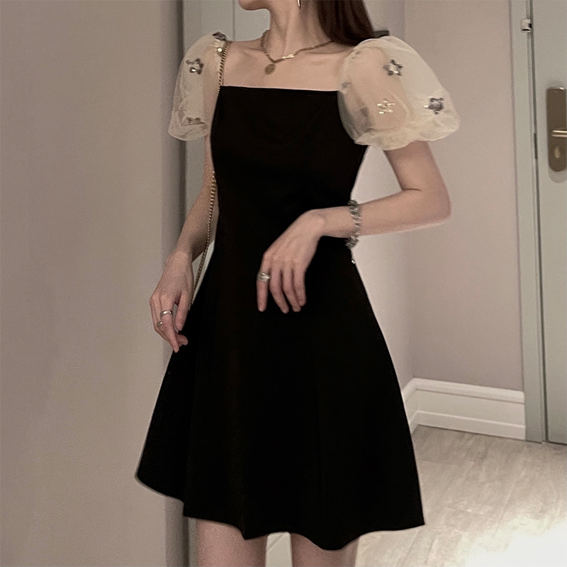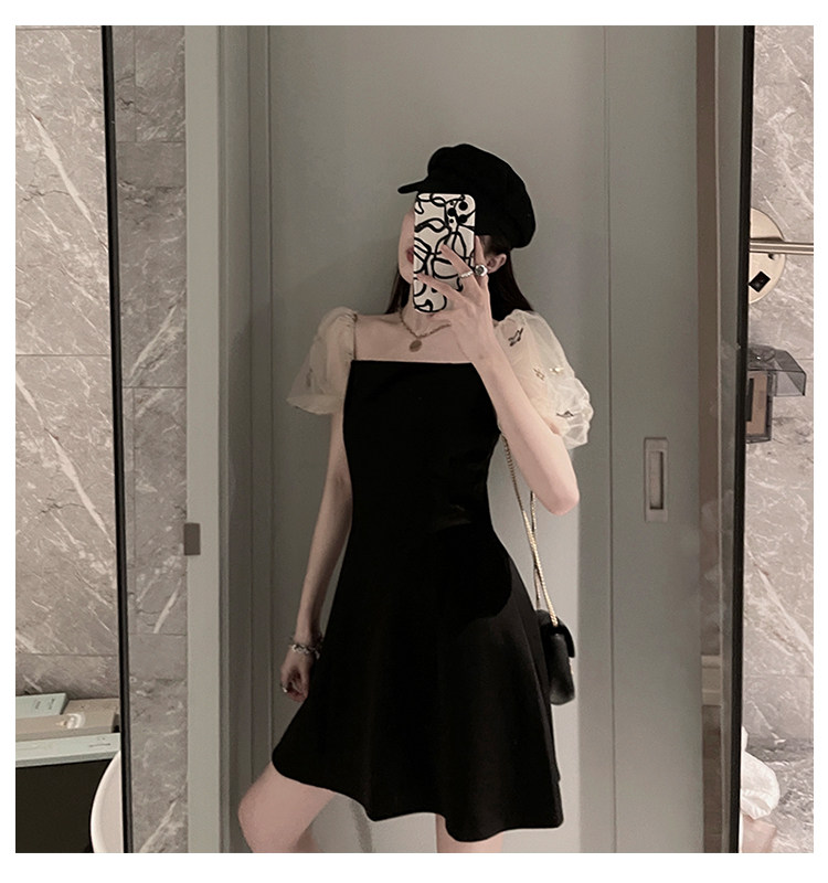 Ретро летняя юбка, элегантное вечернее платье, французский стиль, рукава фонарики, квадратный вырез, коллекция 2022
