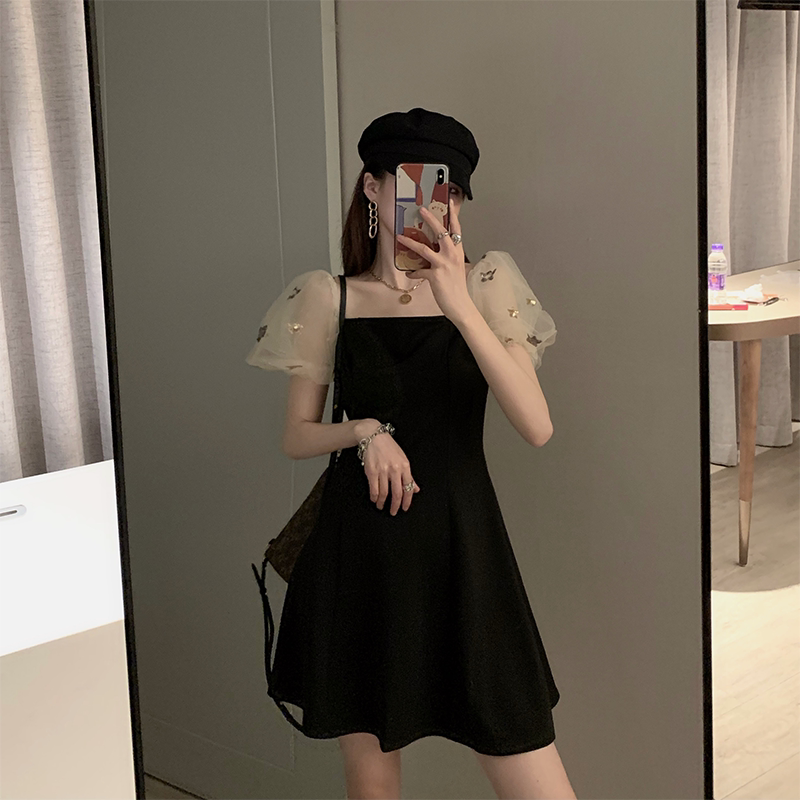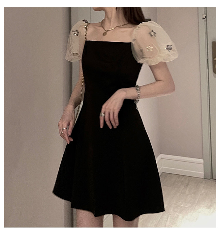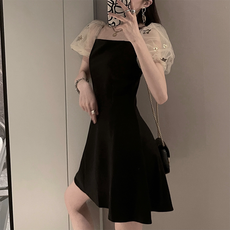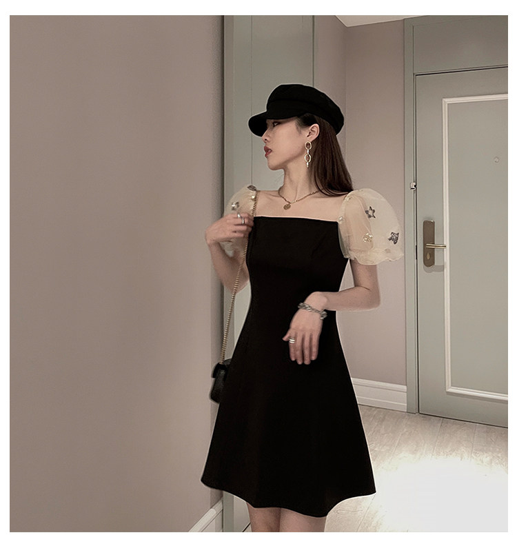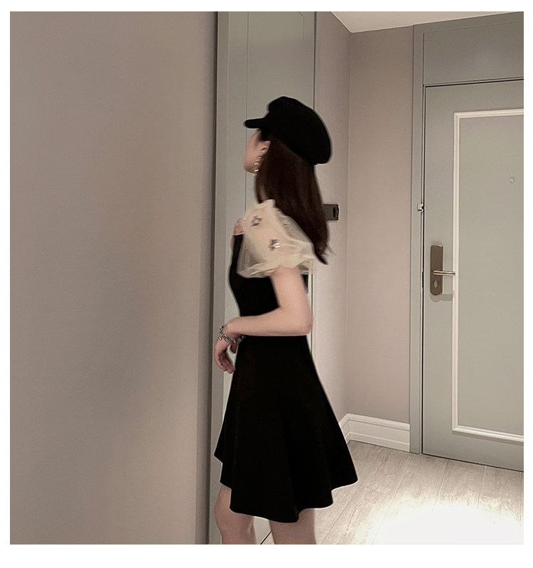 Ретро летняя юбка, элегантное вечернее платье, французский стиль, рукава фонарики, квадратный вырез, коллекция 2022
