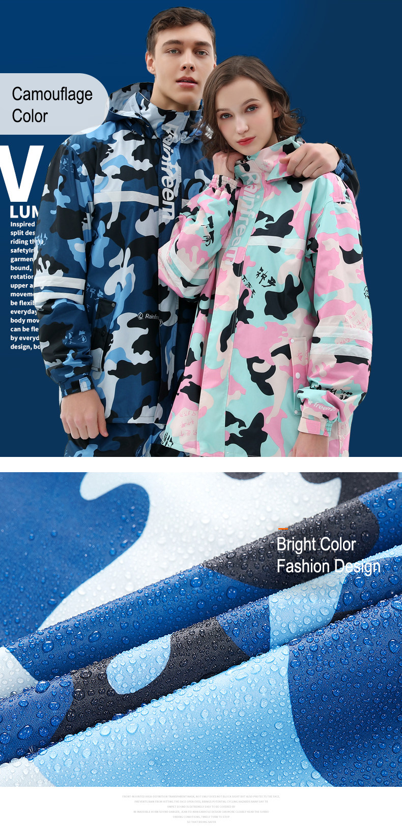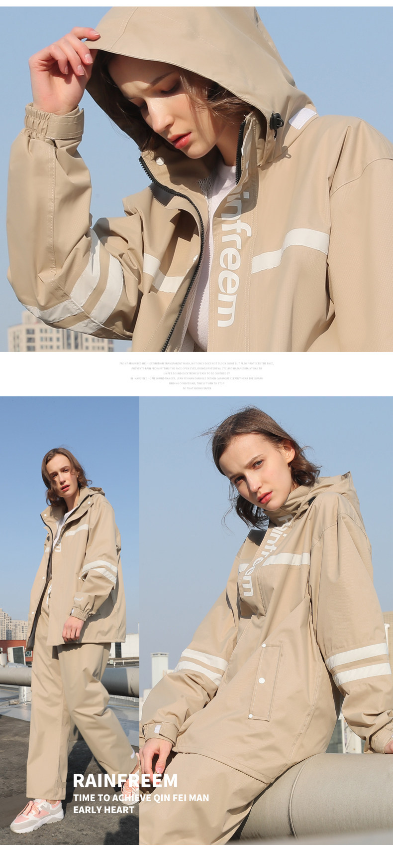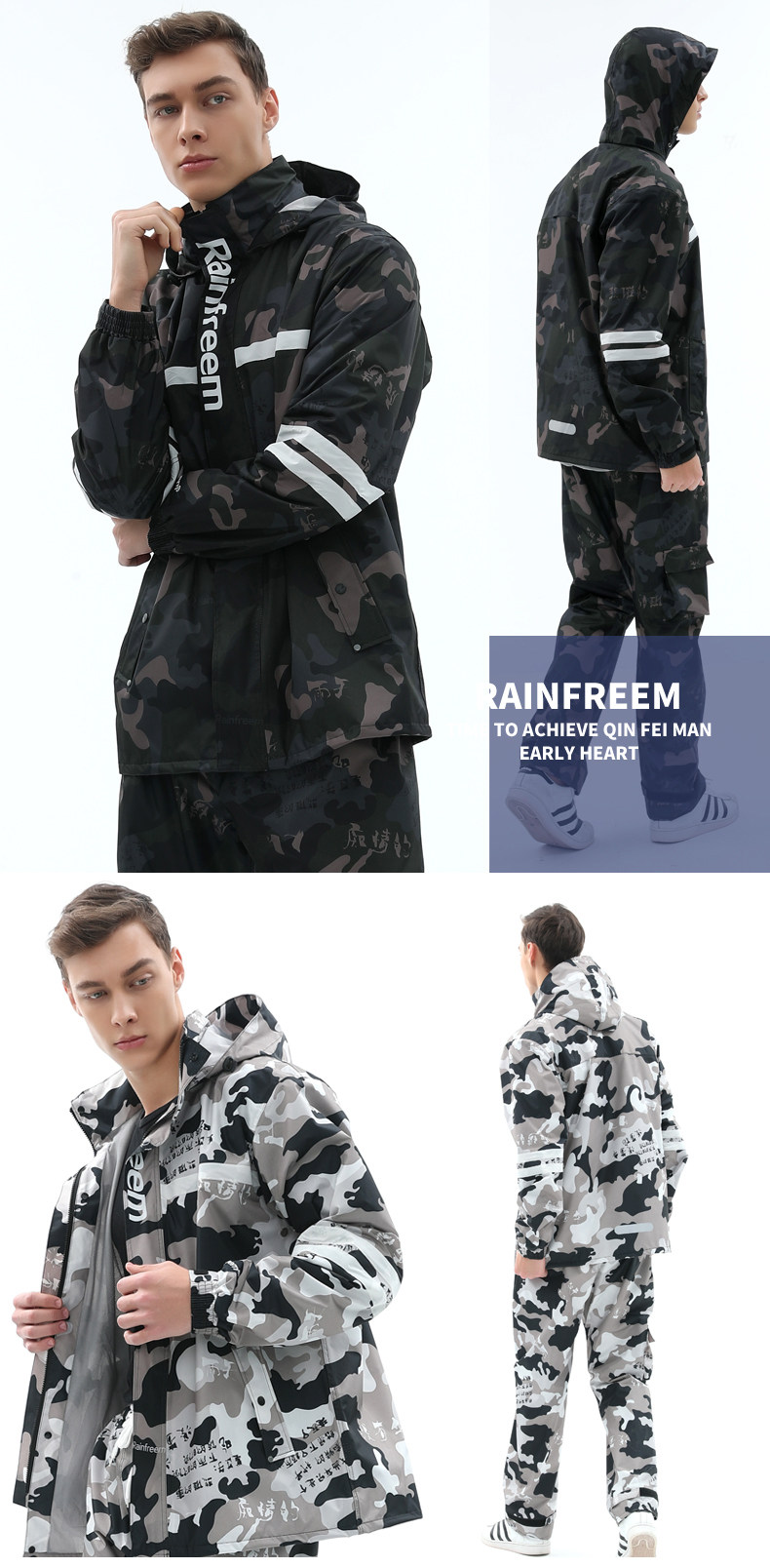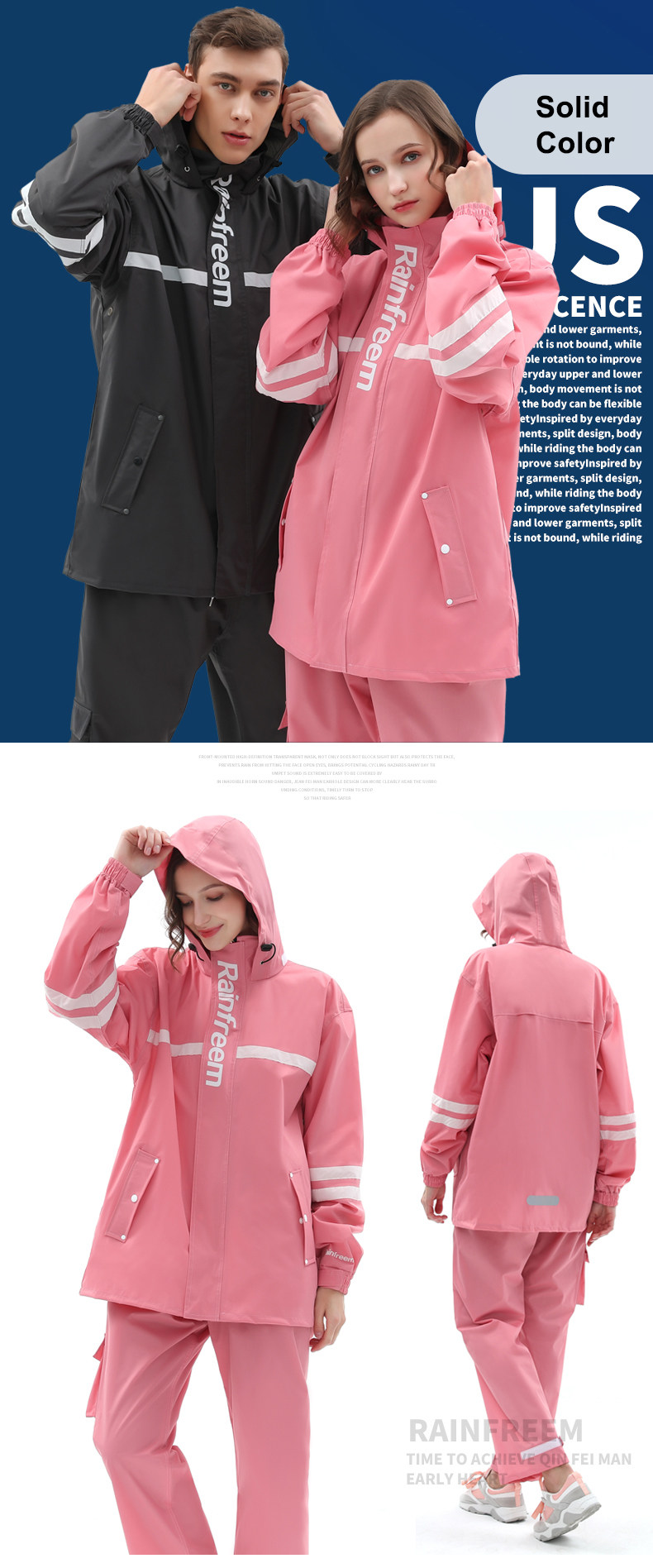 Rainfreem Pongee Raincoat Suit Issermable Women/Men Motorcy