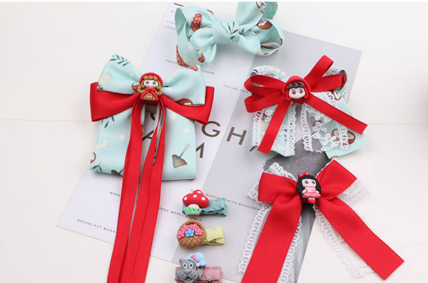 Красная шапочка, милая заколка для волос с бантиком, свежий красный аксессуар для волос, DIY