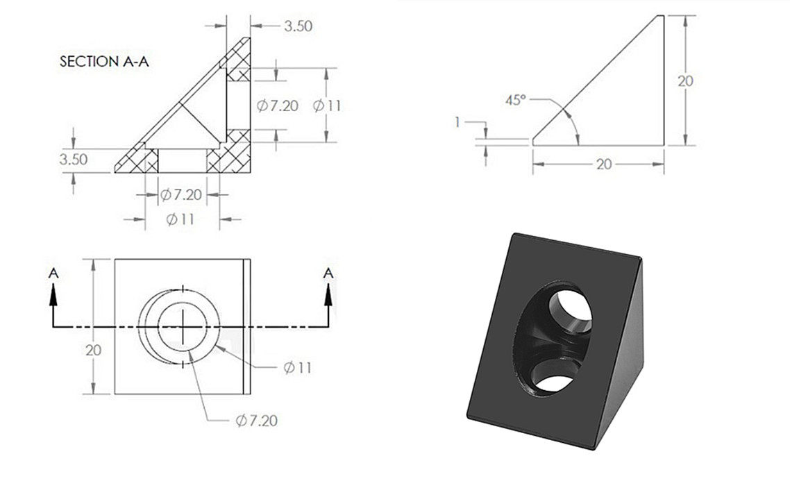 Треугольные аксессуары для 3D -принтеров Фиксированный алюминиевый блок Voron Black Connector 2020 Profile OpenBuilds
