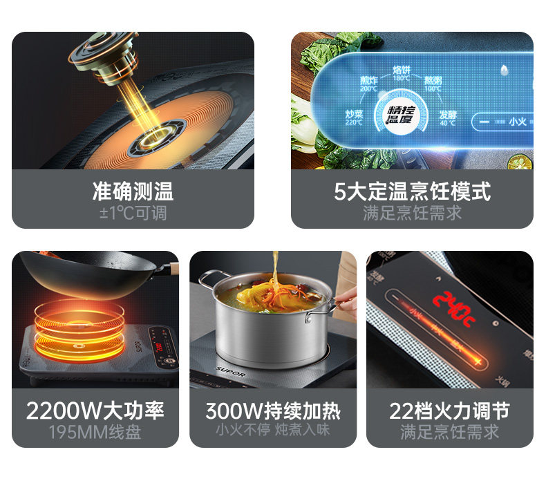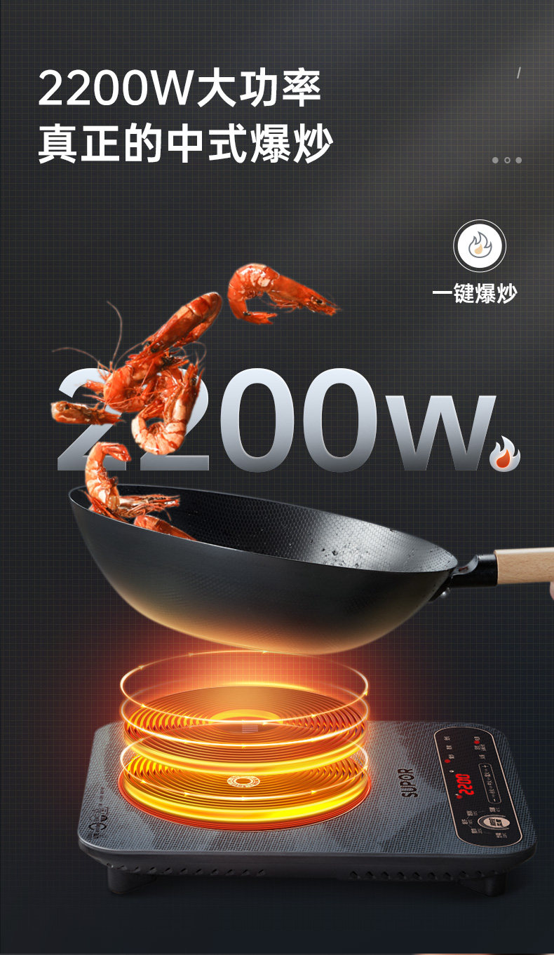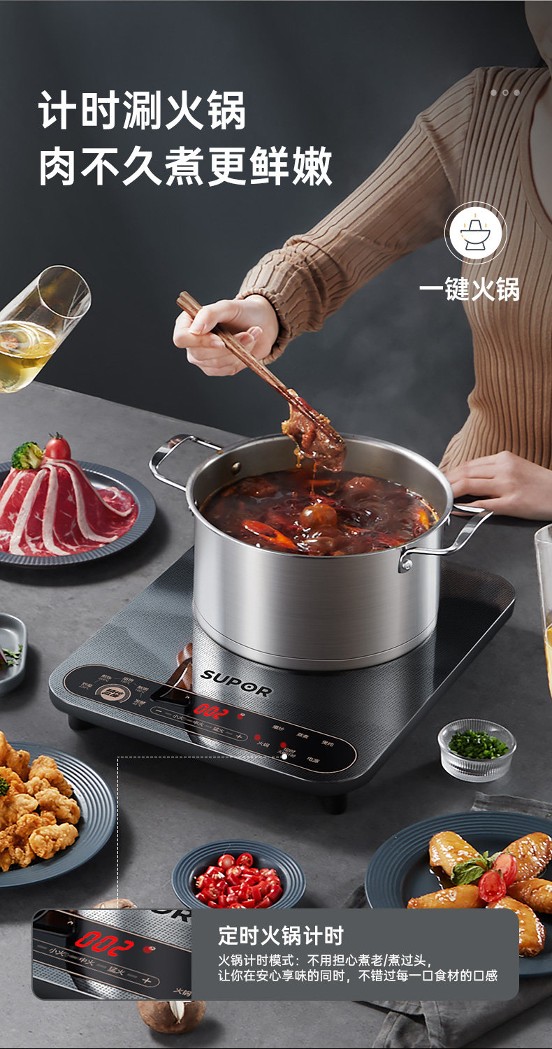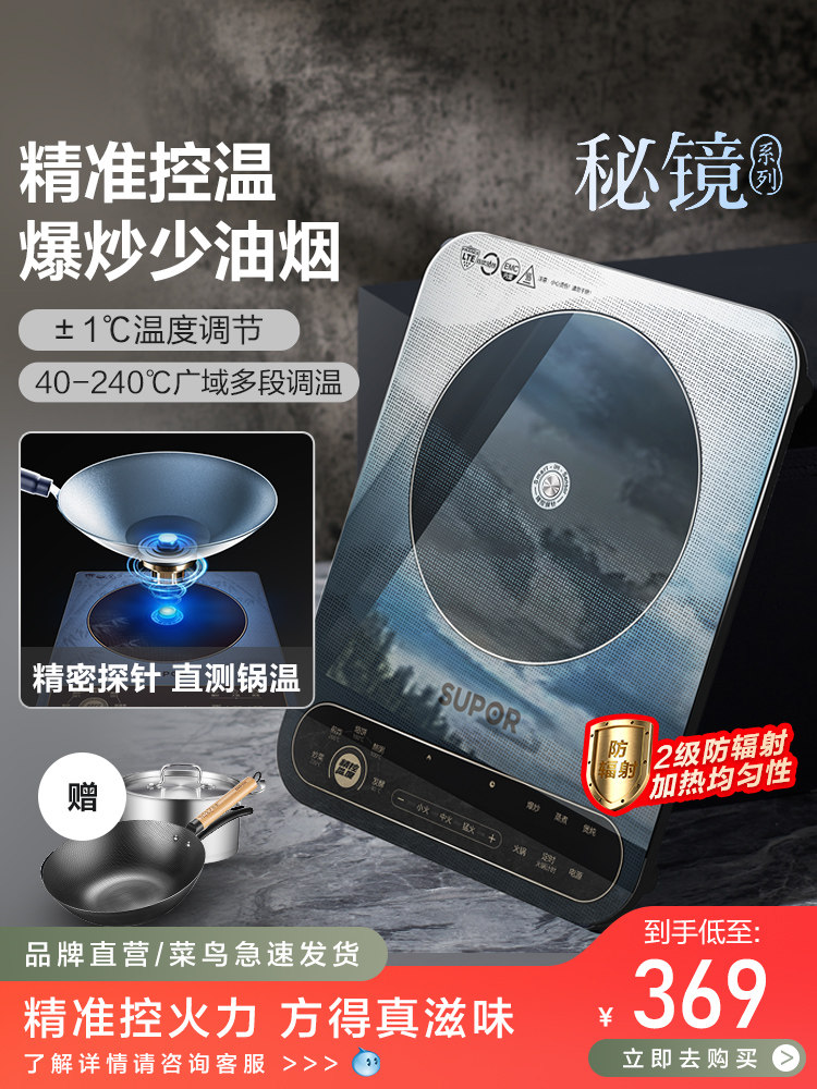 Supor Secret Mirror Индукционная плита Домохозяйство Новая умная высокопроизвольная электромагнитная плита горячая горшка горячая горшка, сэкономившая энергией, экономящая энергия, индукционная плита, экономящая энергия
