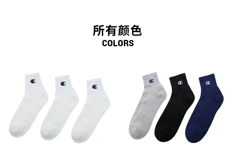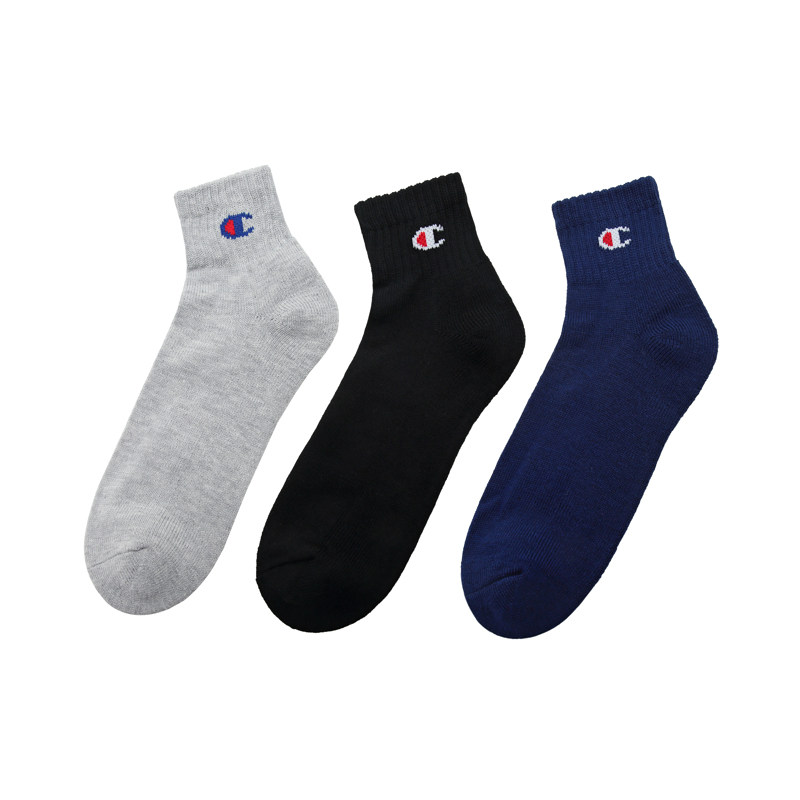 【3 пар】 Чемпионские носки Черно -белый сплошной цвет мужчины и женщины повседневные носки Американское ретро -лето