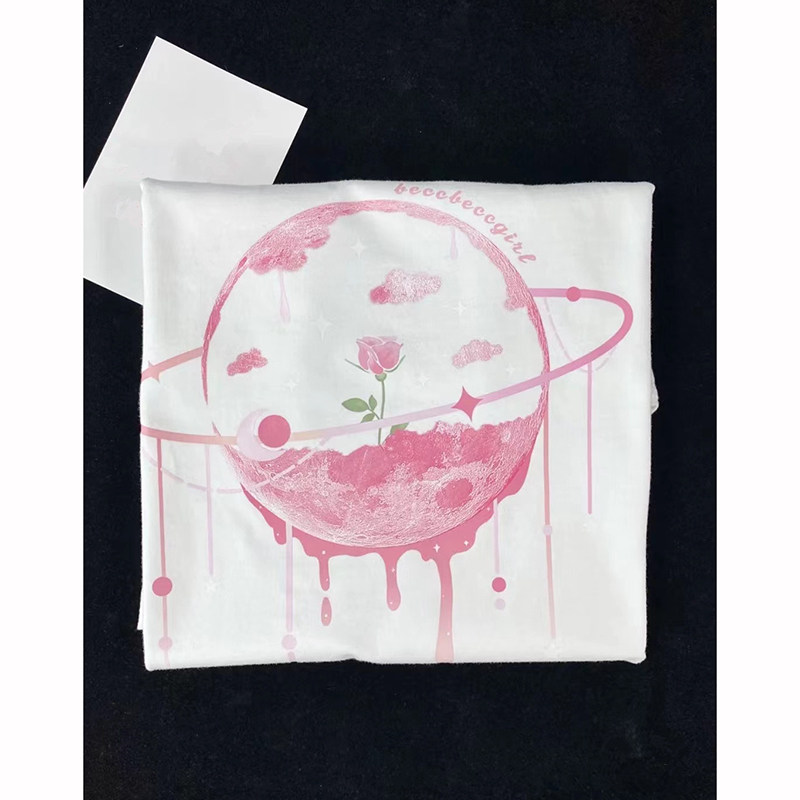 Белая летняя розовая футболка, короткий рукав, коллекция 2022, в корейском стиле, большой размер, принт