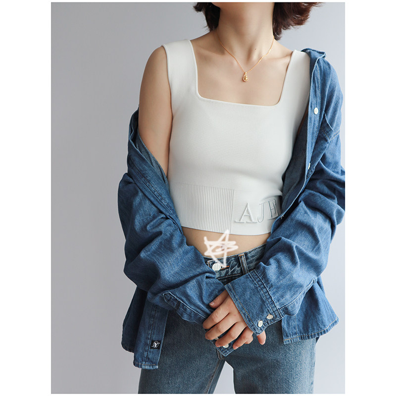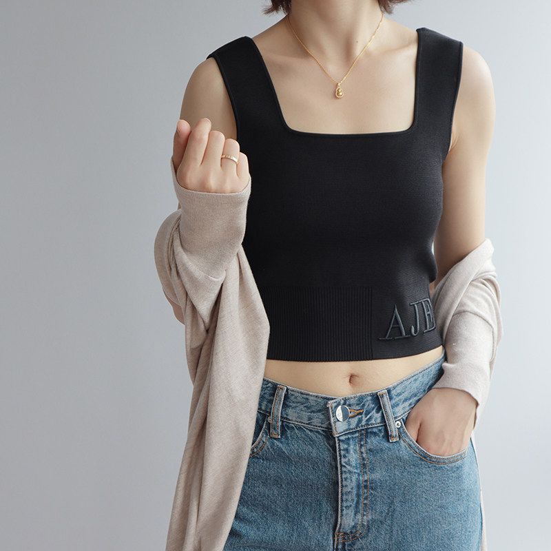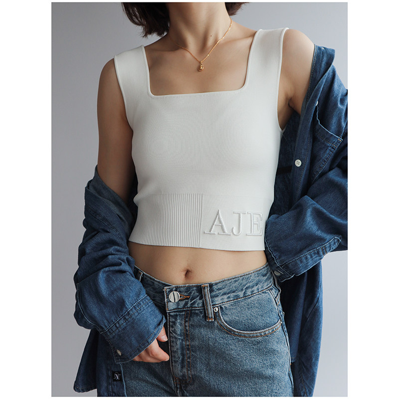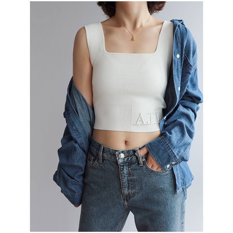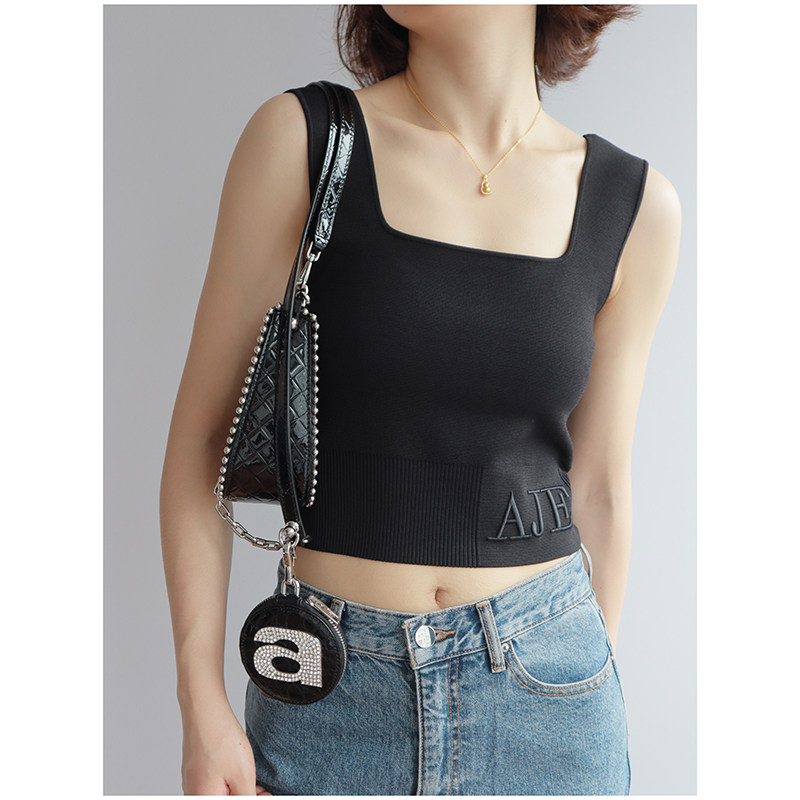 Весенние трехмерные бретели, танк, короткий цветной жилет, с вышивкой, квадратный вырез