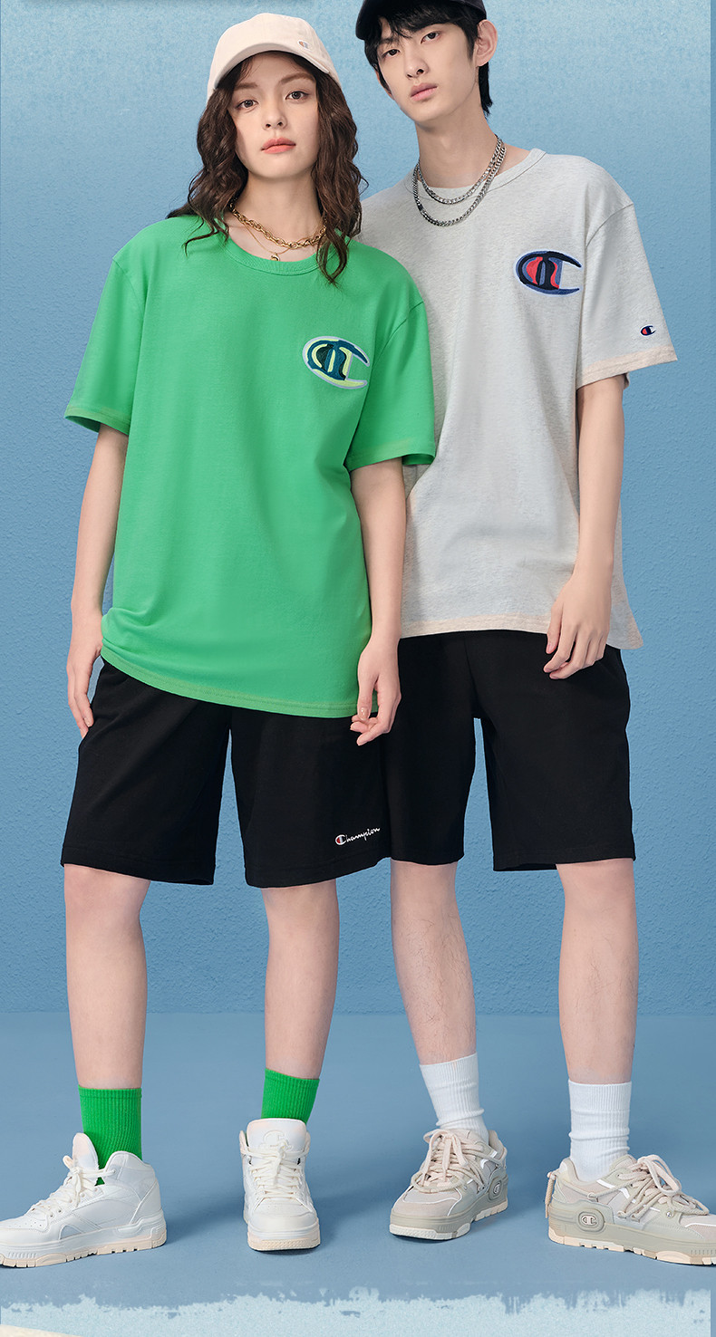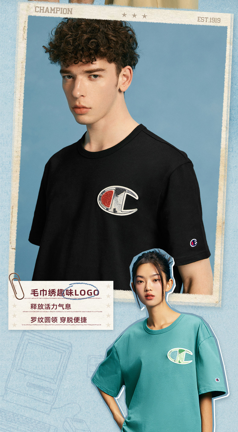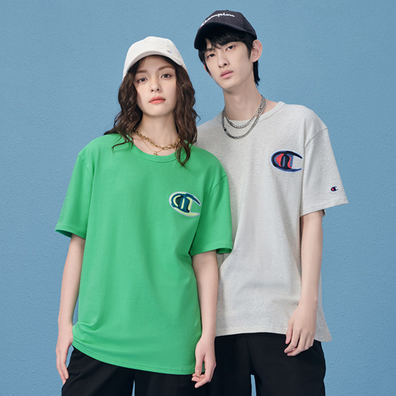 Футболка с короткими рукавами Champion Champion для пар, лето 2024, топ с допамином, женское полотенце с вышивкой из чистого хлопка, американские мужские
