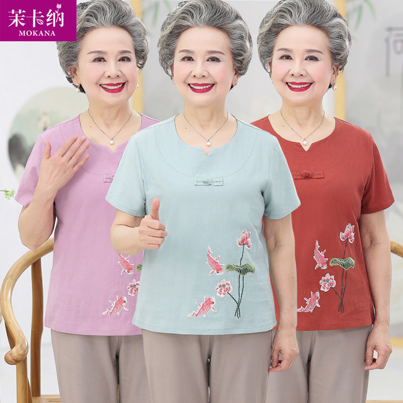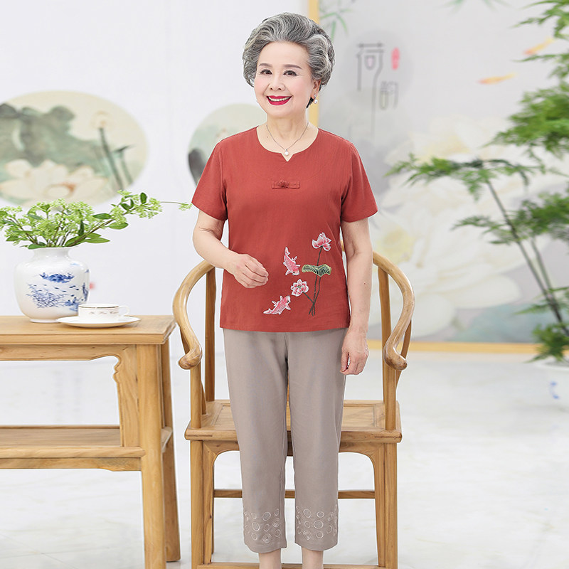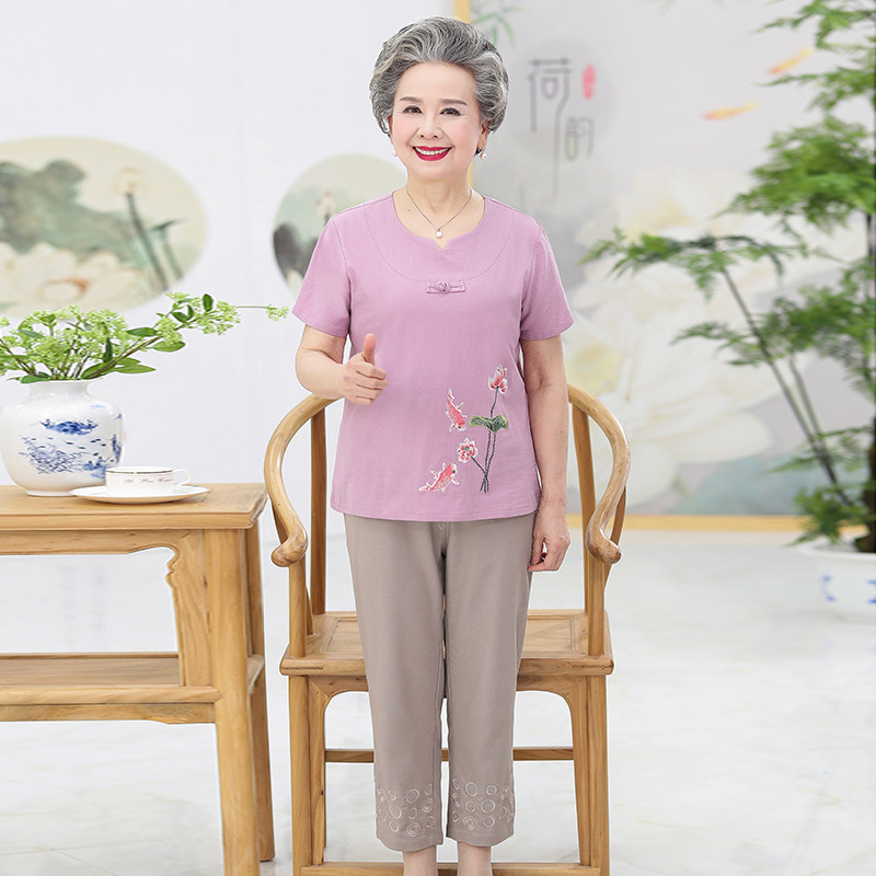 Комплект для пожилых людей, летняя одежда для матери, 70 лет, для среднего возраста, в западном стиле, короткий рукав, с рукавом