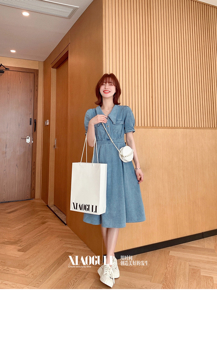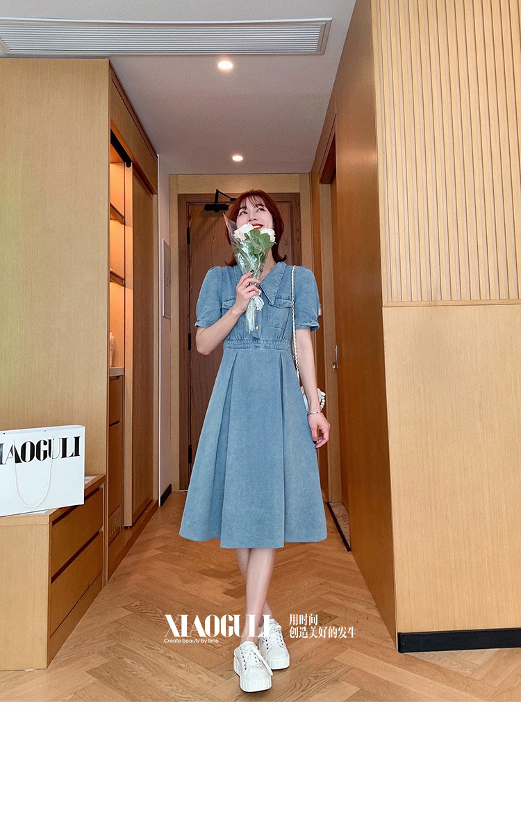 小谷粒 Молодежное платье, летняя летняя одежда, приталенный корсет, ретро джинсовая юбка, изысканный стиль, подходит для подростков, А-силуэт, французский ретро стиль