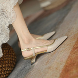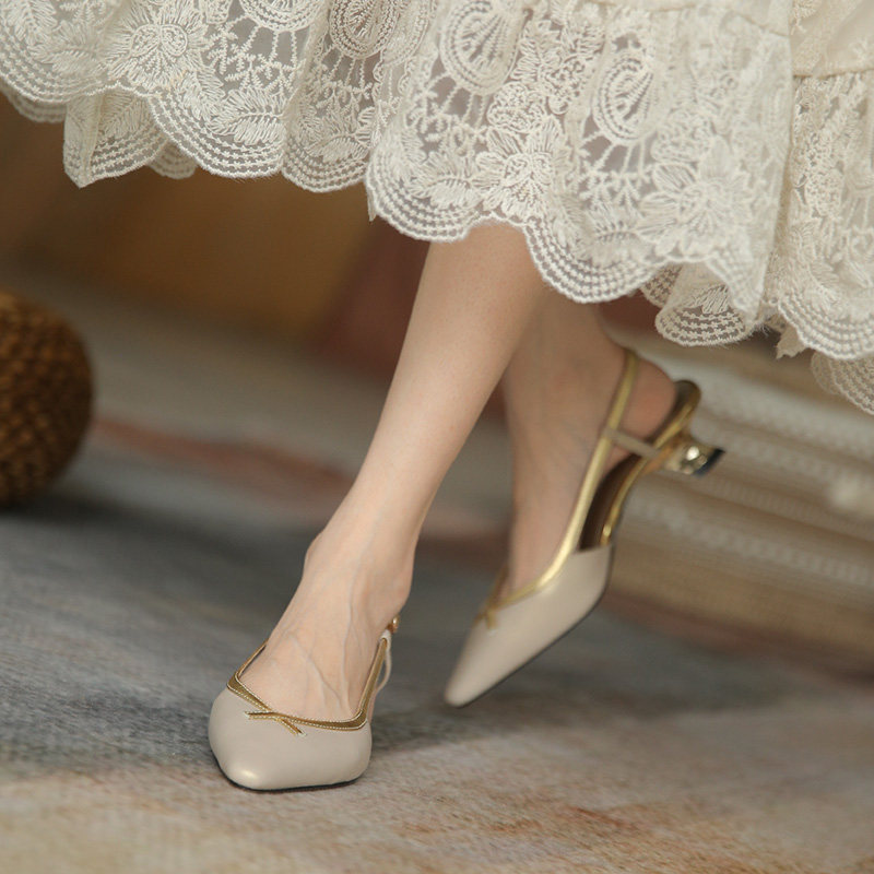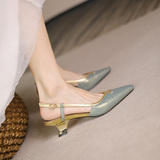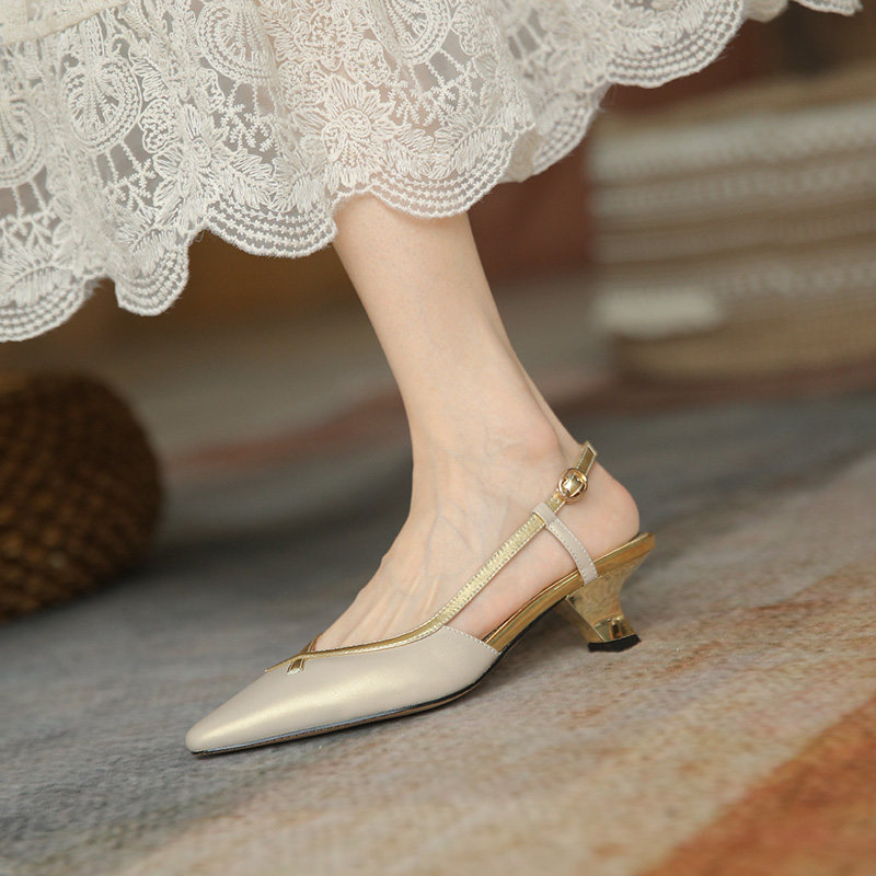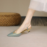 Место проведения Тисдайни является обычным явлением ~ Baotou Sandals Женские летние средние каблуки заостренная кожаная сумка на высоком каблуке 4 см.