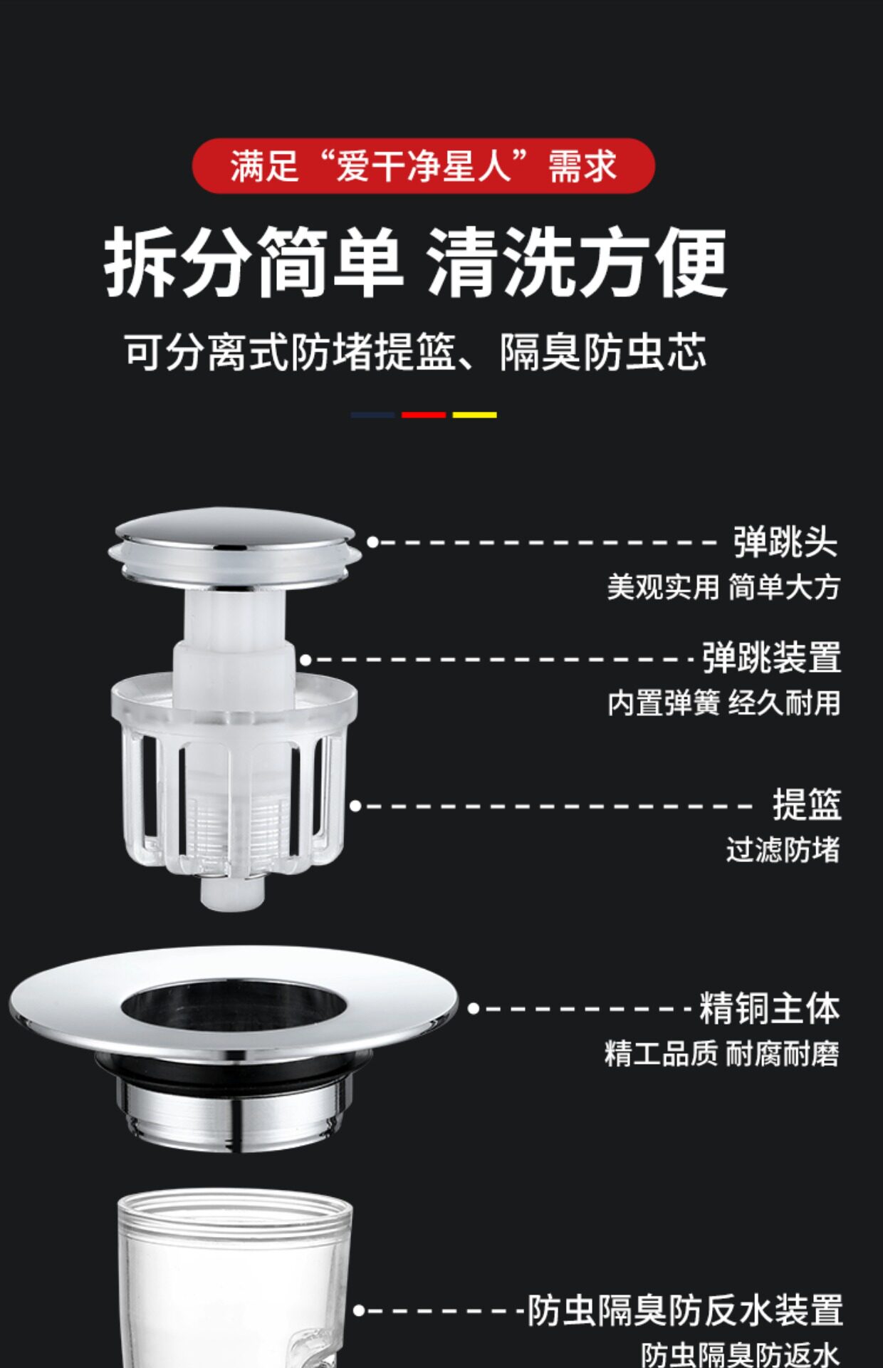 Папа оценивает дезодорант бассейна бассейна бассейна, дезодоризируя Washbasin, заглушающий воду с блинчительной водой типа