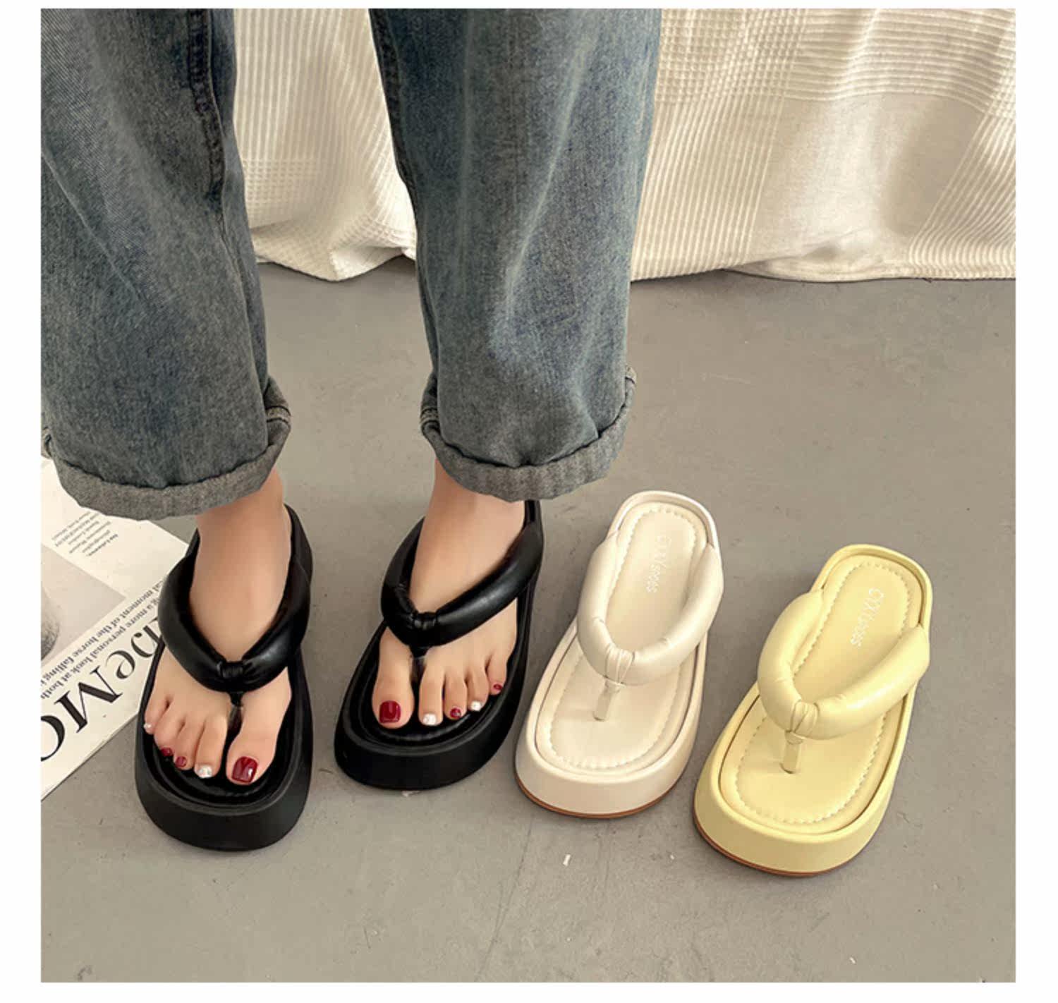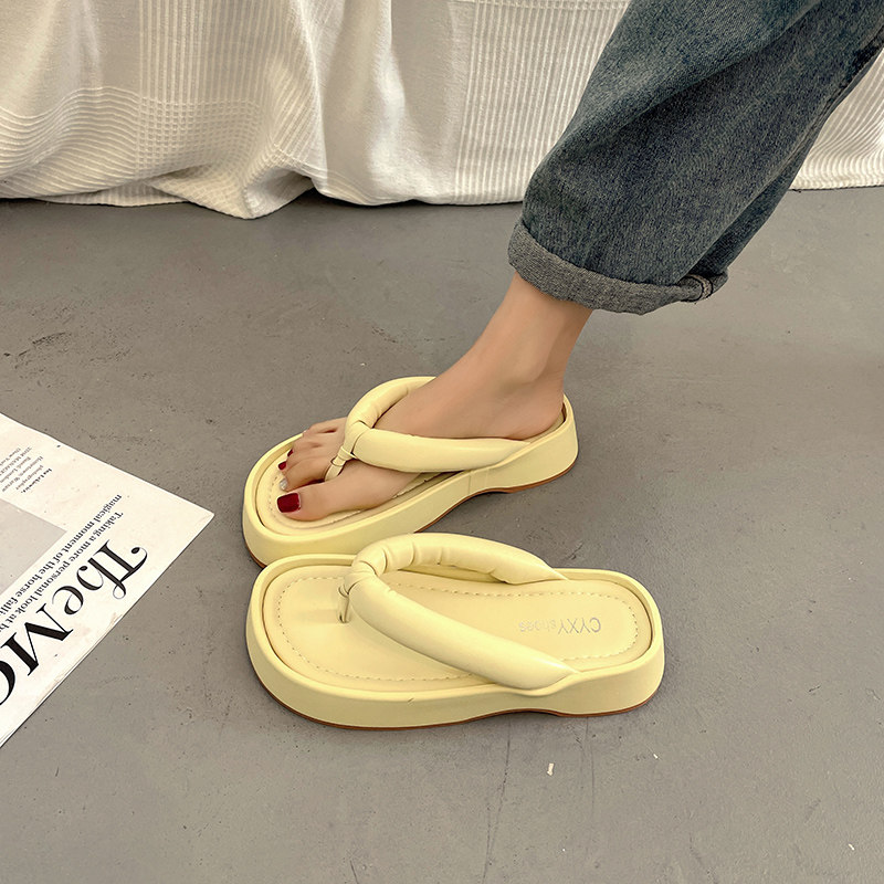 Черные сланцы на платформе, летние тапочки, нескользящая пляжная обувь, популярно в интернете, коллекция 2022, пляжный стиль