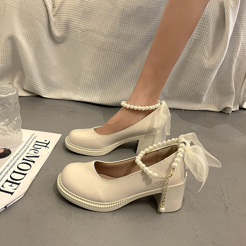 Весенняя универсальная черная обувь на платформе в английском стиле для кожаной обуви на высоком каблуке, в британском стиле, коллекция 2023