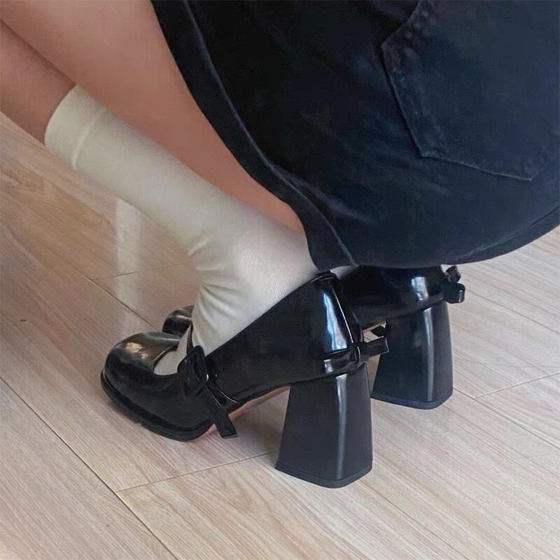 Неверное разрешение кода!!!Сделайте ваши ноги длиннее!!Девчачьи белые туфли Мэри Джейн на высоких каблуках