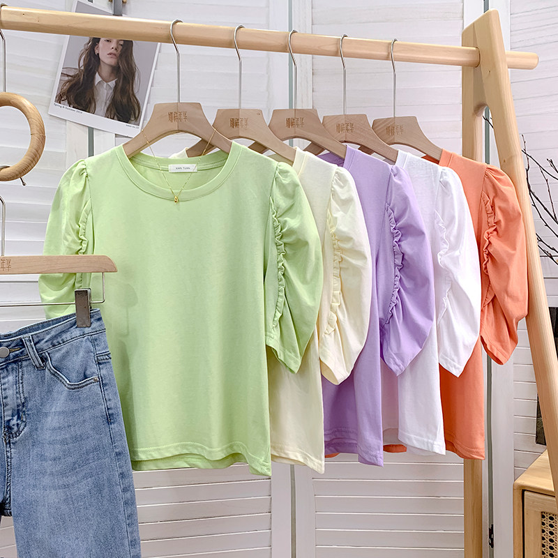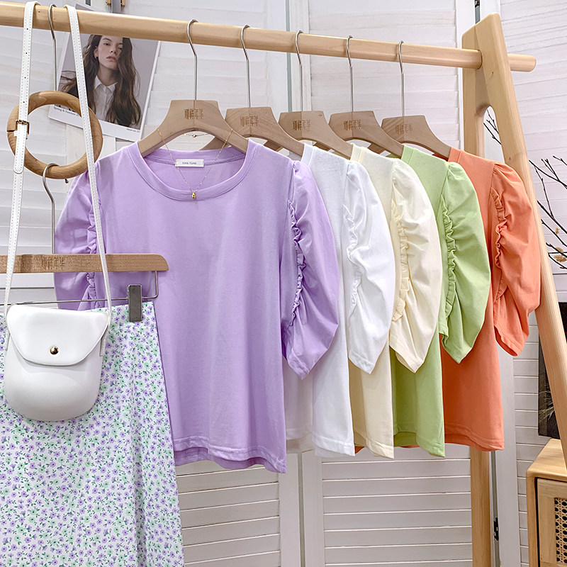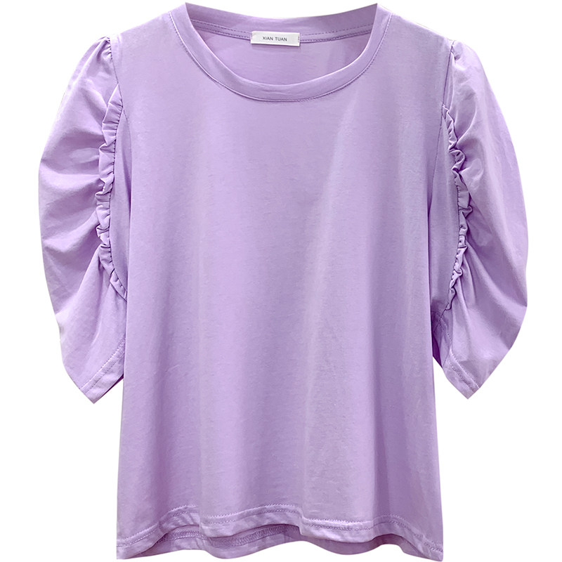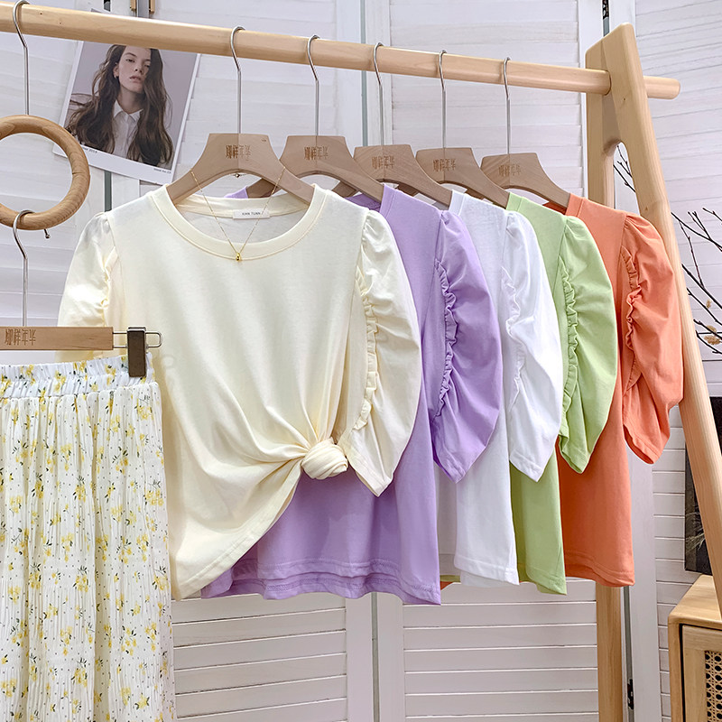 Дизайнерская милая футболка, тренд сезона, французский стиль, короткий рукав, свободный крой, по фигуре