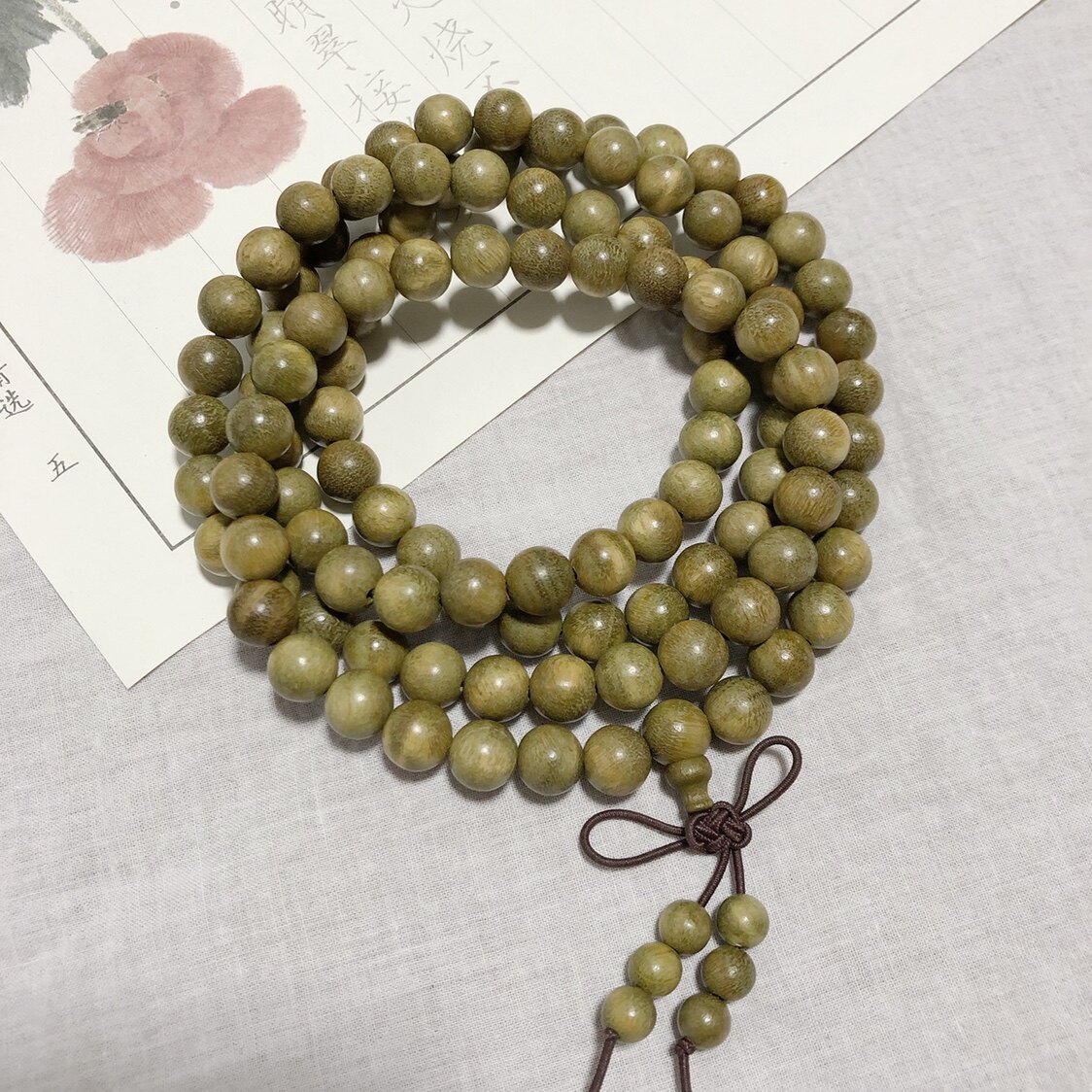 Бусины из зеленого сандала из сандалового дерева, 108 бусин, 8mm
