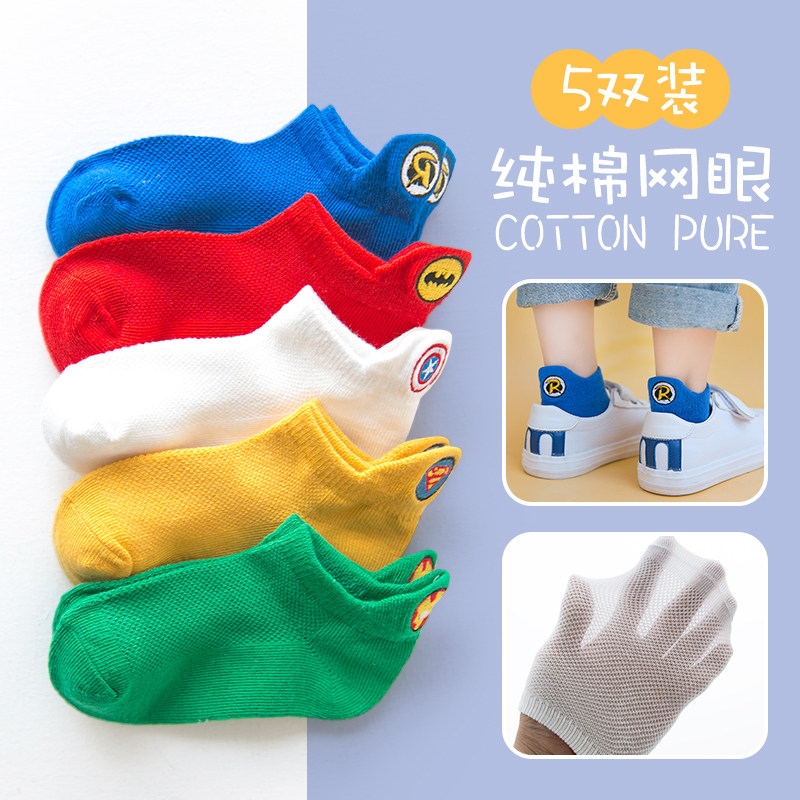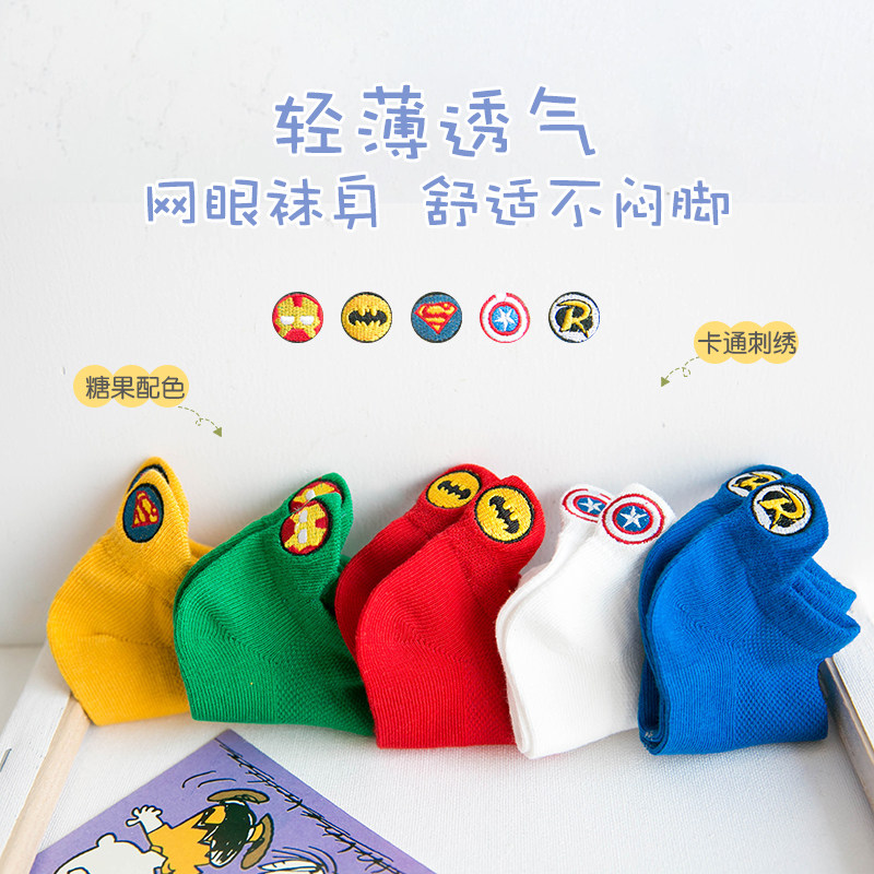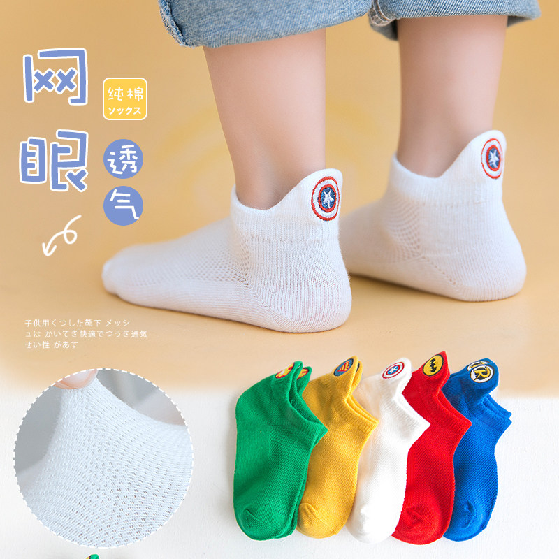 Летние тонкие детские хлопковые дышащие мультяшные носки для мальчиков, с вышивкой