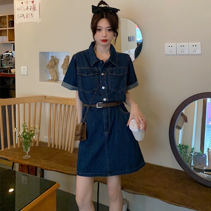 Летний ретро дизайнерский приталенный корсет, джинсовое платье, ремень, большой размер, французский ретро стиль, тренд сезона