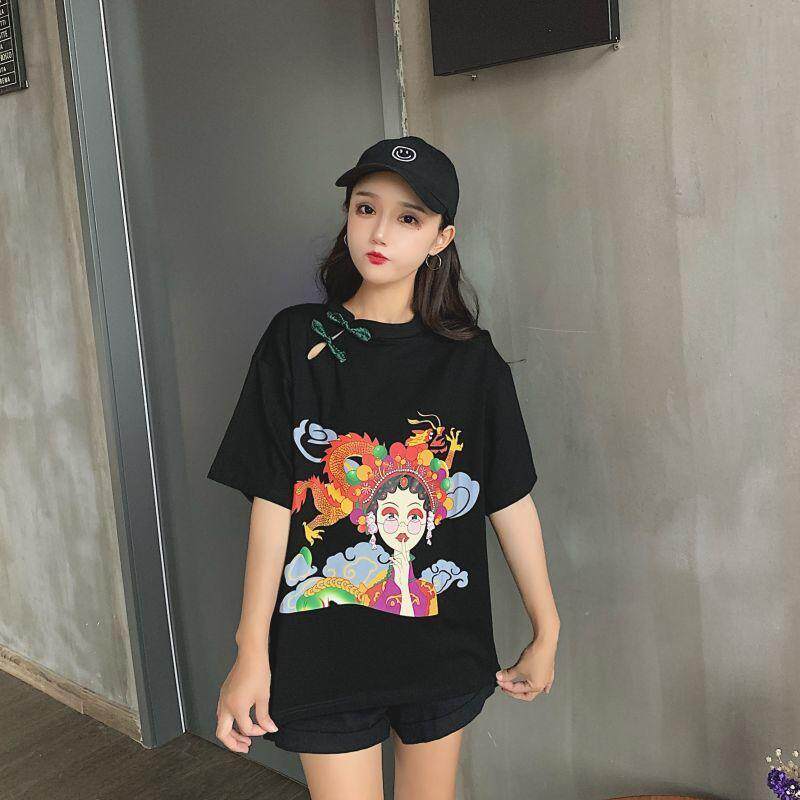 Футболка, летнее модное ретро ципао, коллекция 2023, китайский стиль, короткий рукав