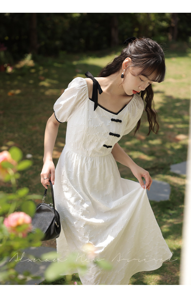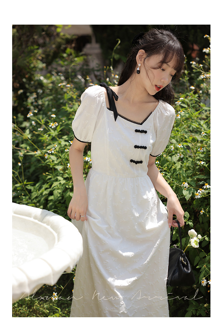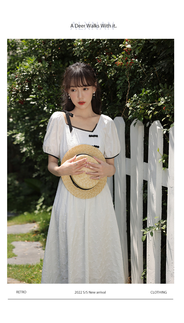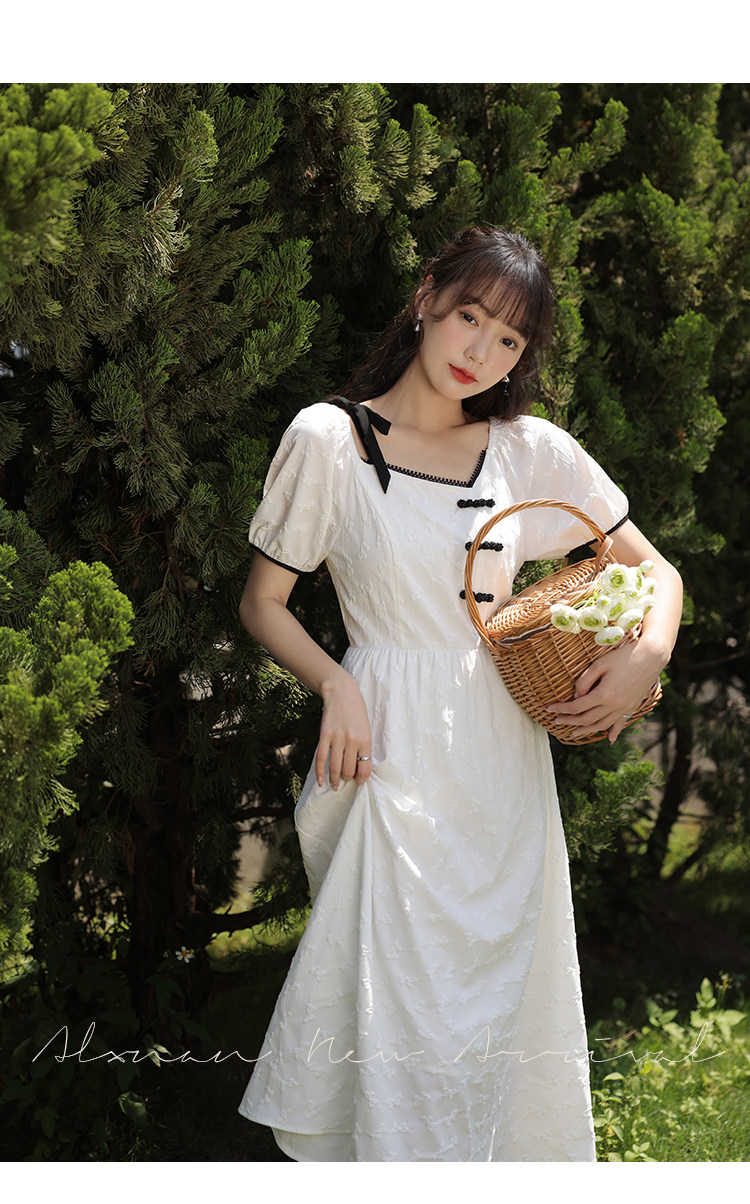 Летнее платье, летняя длинная юбка, китайский стиль, короткий рукав, с рукавом, длина макси