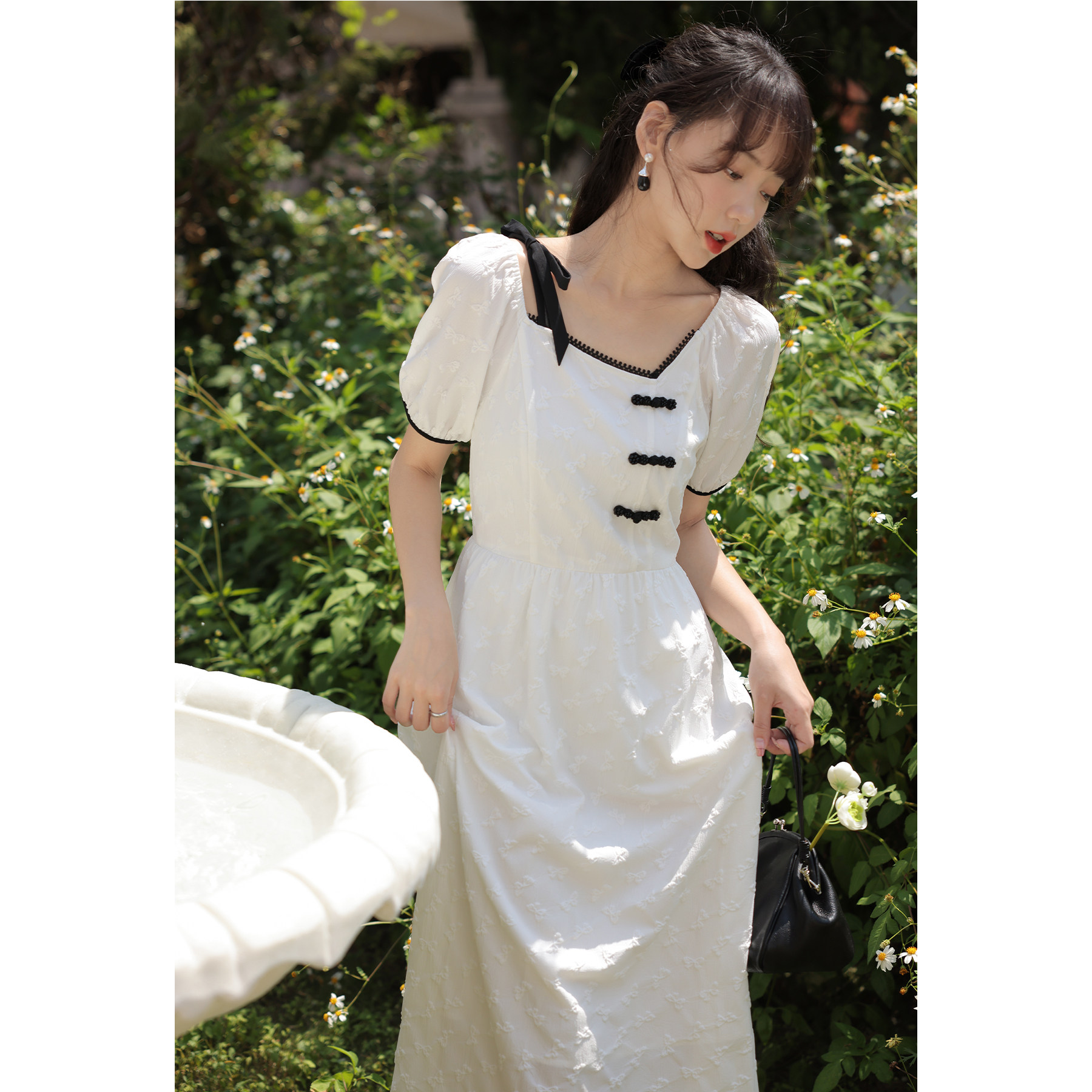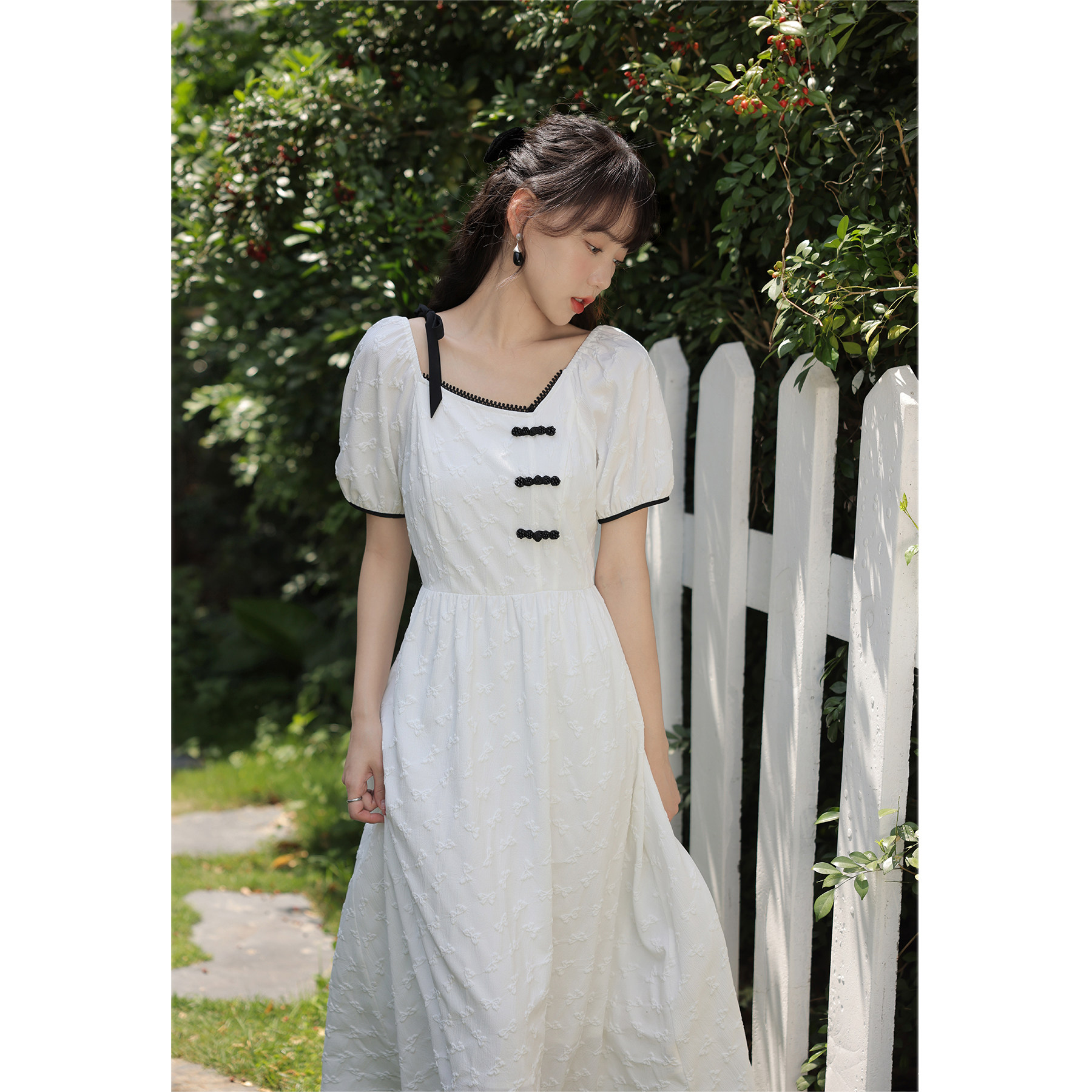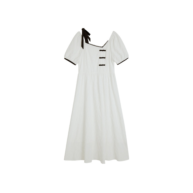 Летнее платье, летняя длинная юбка, китайский стиль, короткий рукав, с рукавом, длина макси