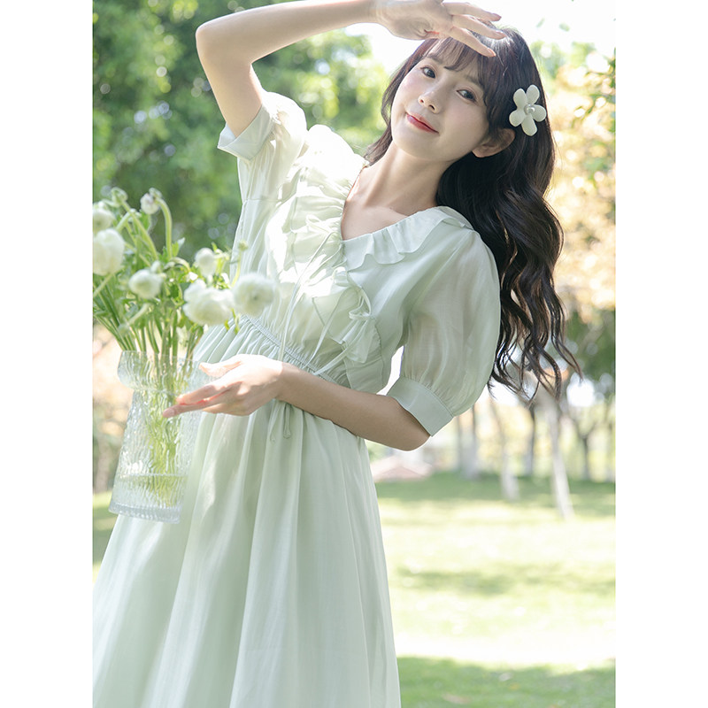 Зеленое летнее платье, дизайнерский приталенный корсет, длинная юбка, тренд сезона, средней длины, длина макси