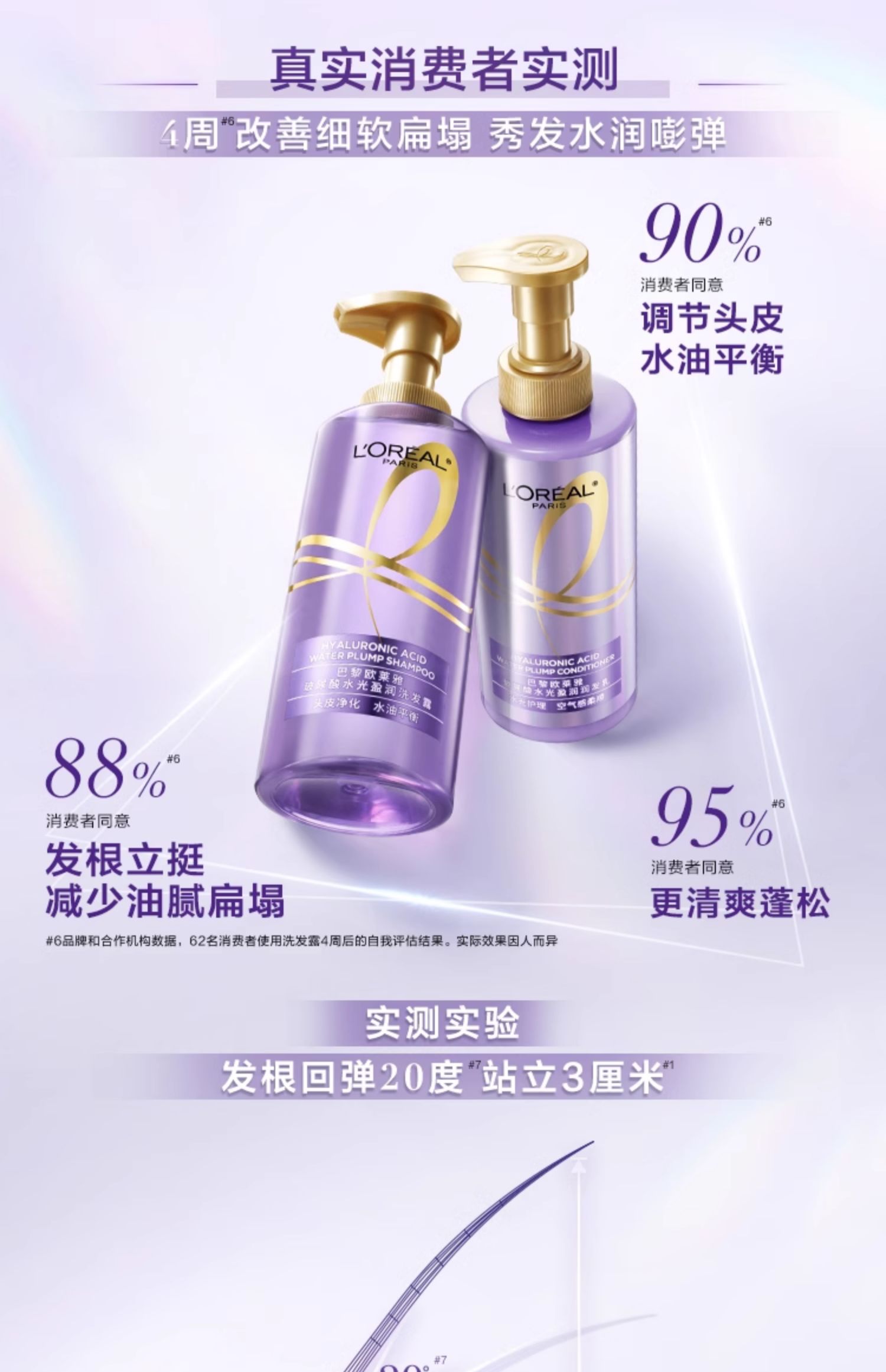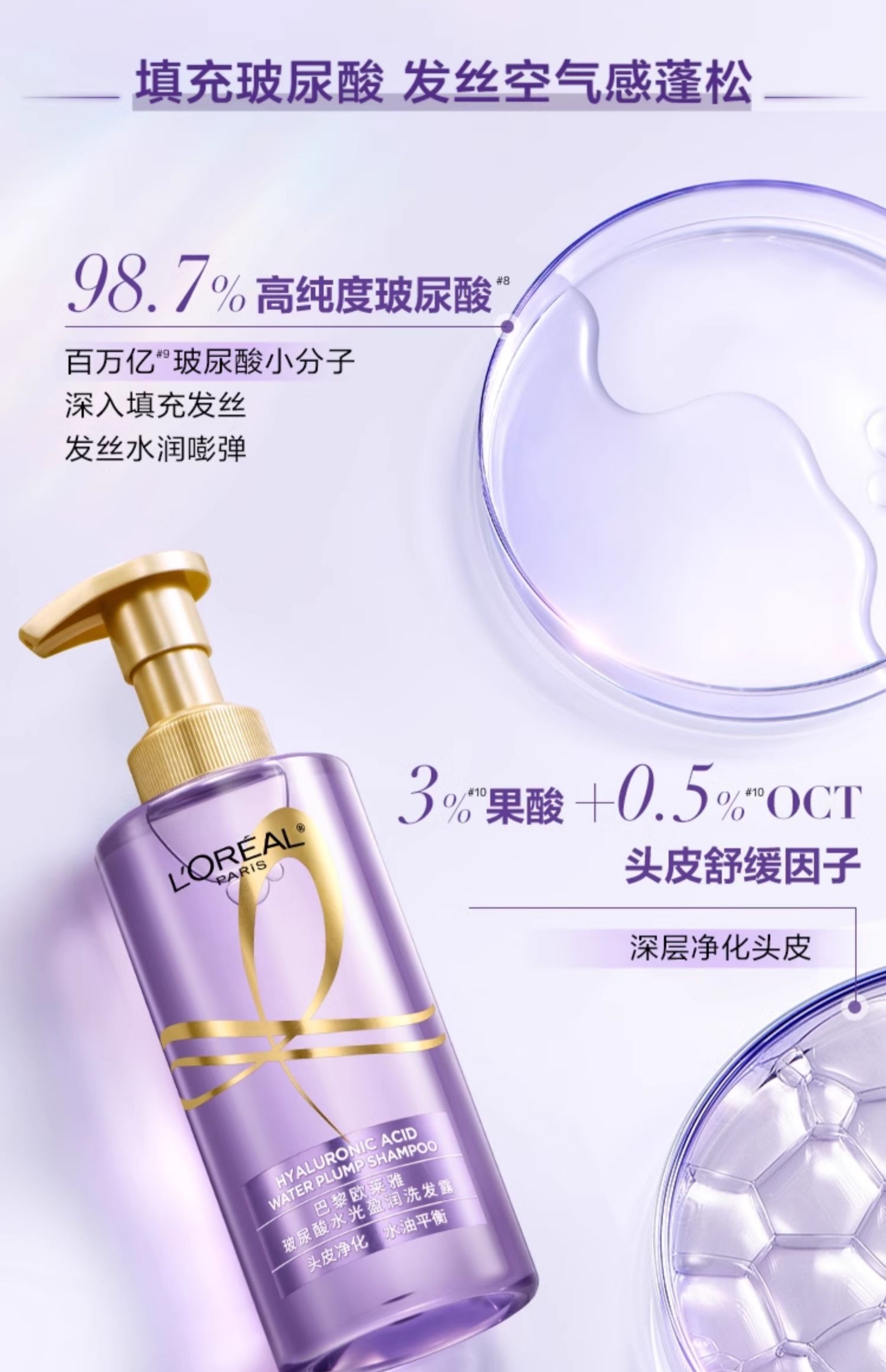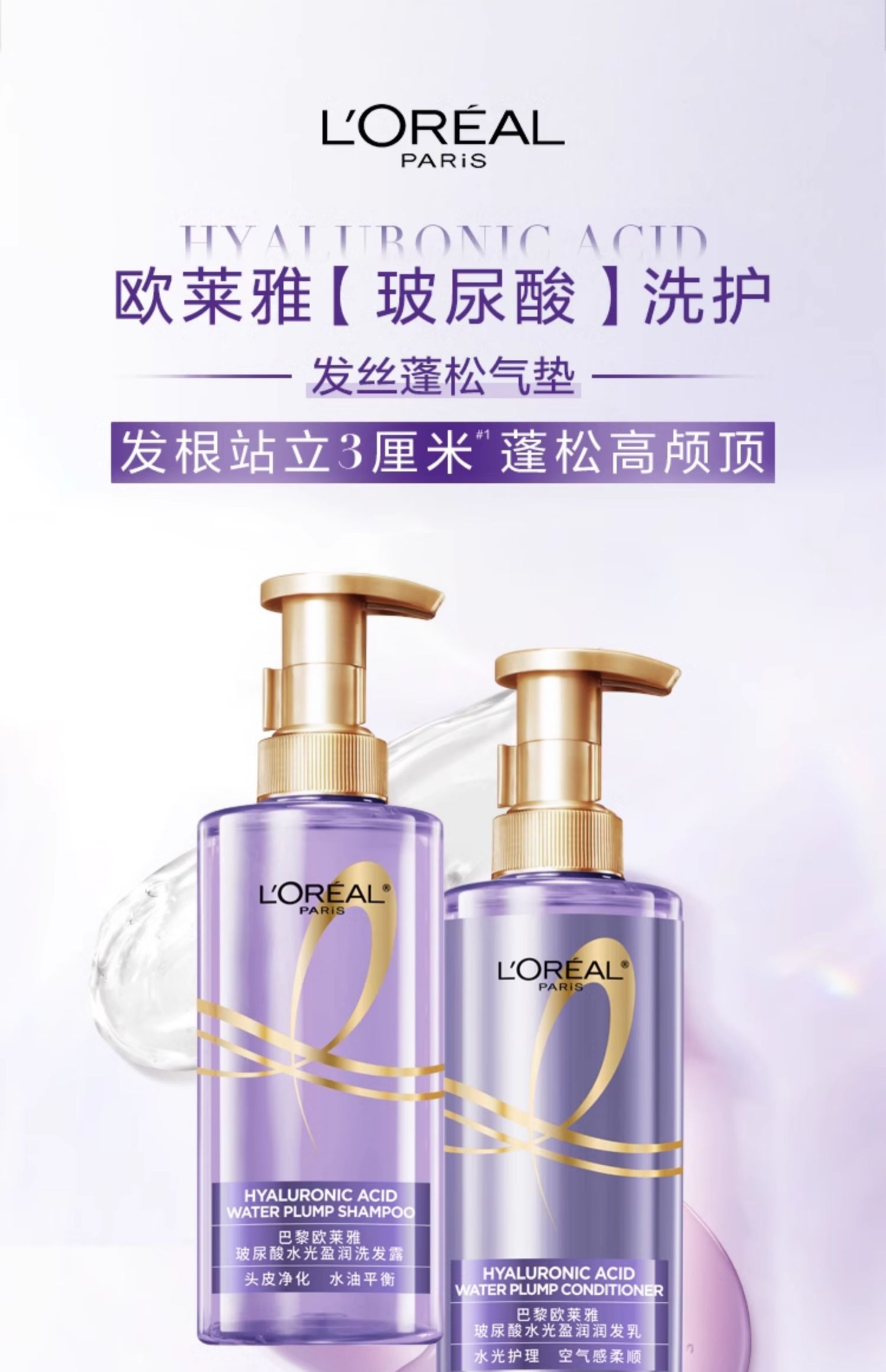 L'Oreal, шампунь с гиалуроновой кислотой, придает объем, 100 мл