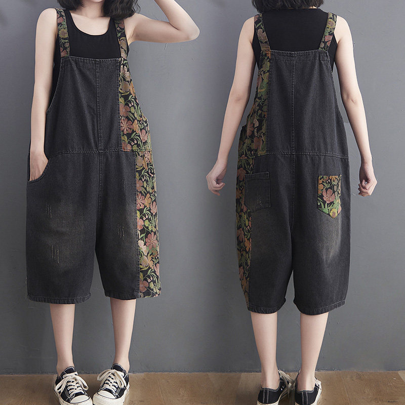 Ретро комбинезон для отдыха, летние штаны, большой размер, свободный прямой крой