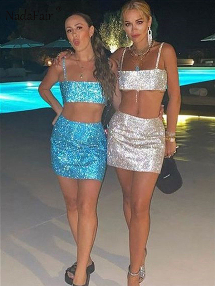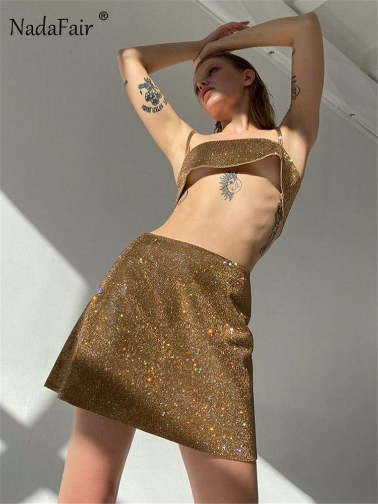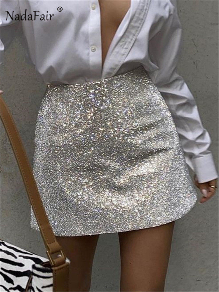 Nadafair Glitter Skirts женские 2021 Клубной Ночь высокая талия A-