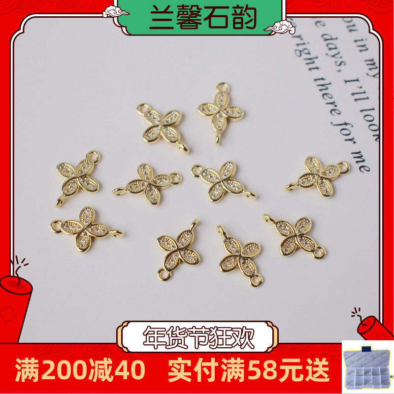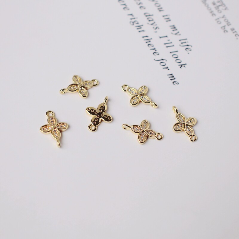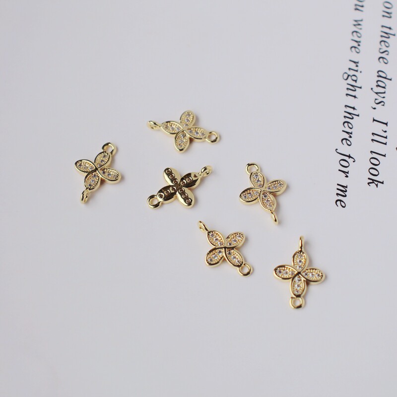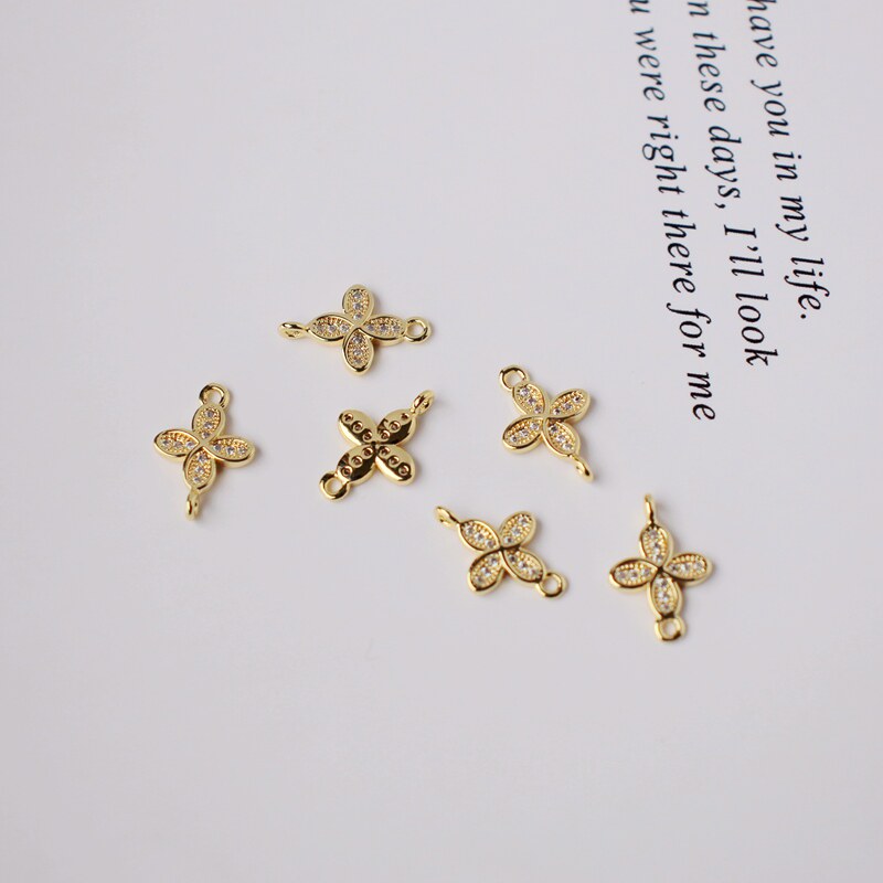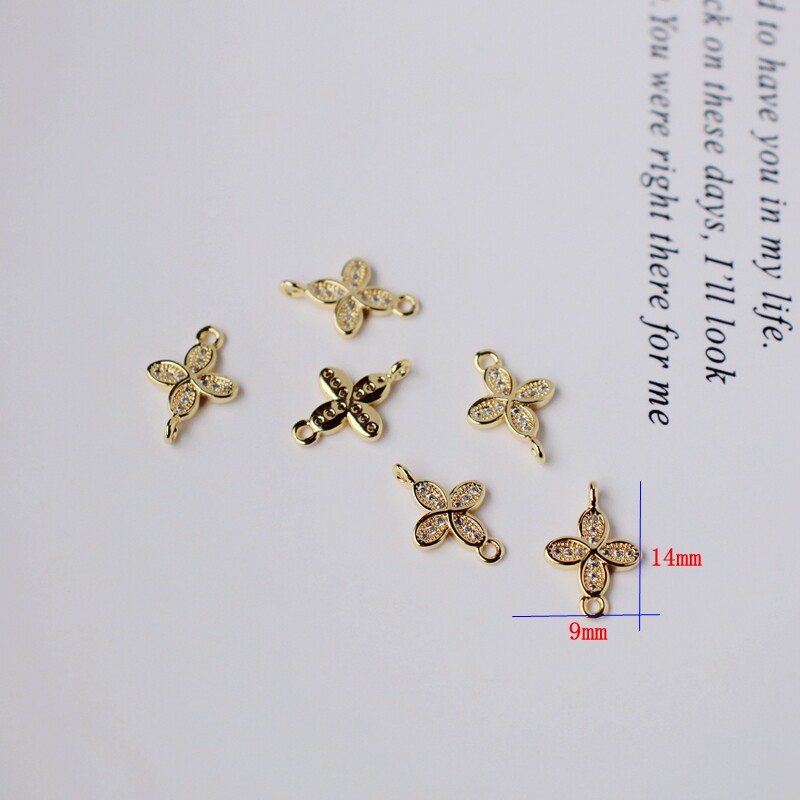 Инкрустация камня с цирконом, аксессуары, серьги, браслет, 14 карат, золотой цвет, четырехлистный клевер, DIY